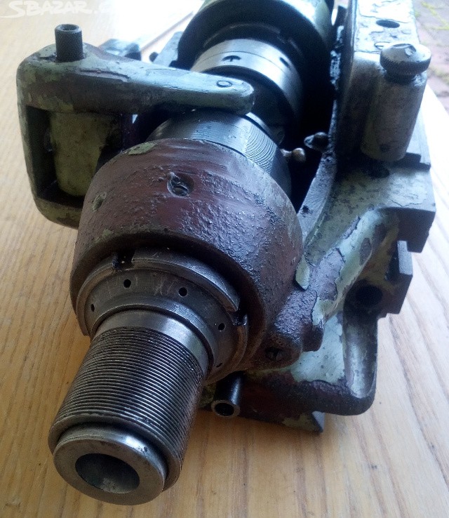 dostal se mi do ruky tento vřeteník s mechanickým upínáním materiálu. Potřeboval bych pomoc s identifikací. Bohužel není kompletní chybí kleštiny a matice, které bych potřeboval někde sehnat.