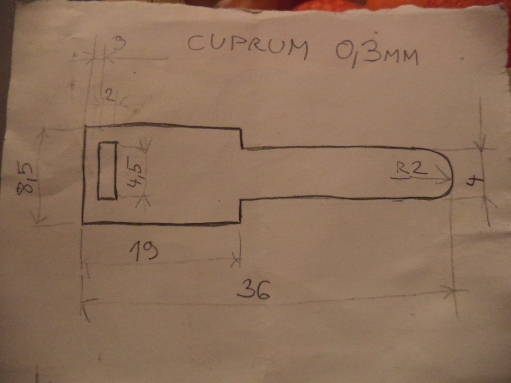 Poptávám výrobu součastky viz. náčrtek z měděného plechu síly 0,3mm v počtu 500ks, předem děkuji za nabídky.