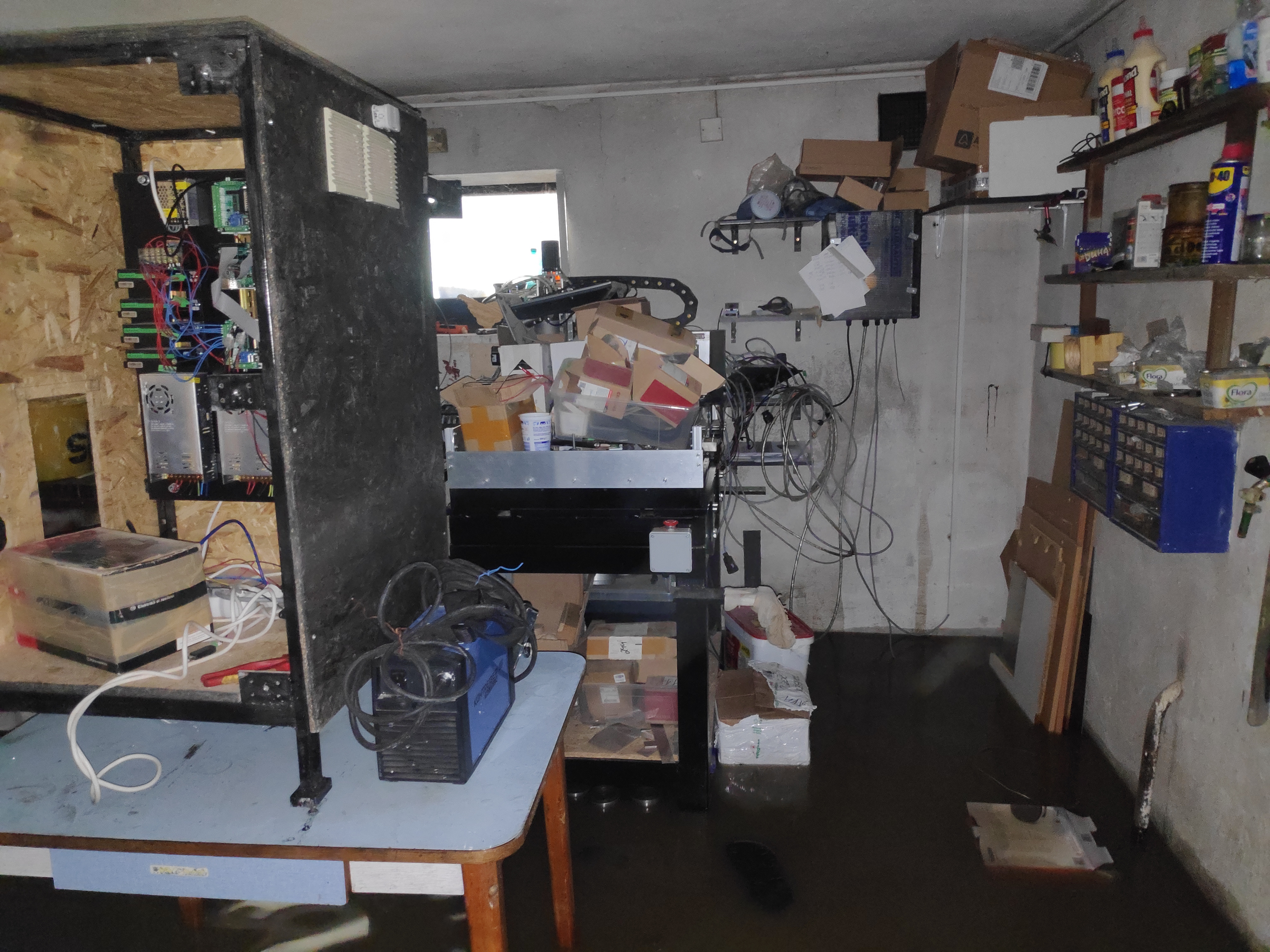 Někteří na tom jsou mnohem mnohem hůř, nebyl jsem doma jak už tam bylo vody jak je na fotce, takže jsem jenom rychle přestříhal dráty a dal "rozváděč" na stůl. Takto vypadal stroj včera v 1 odpoledne