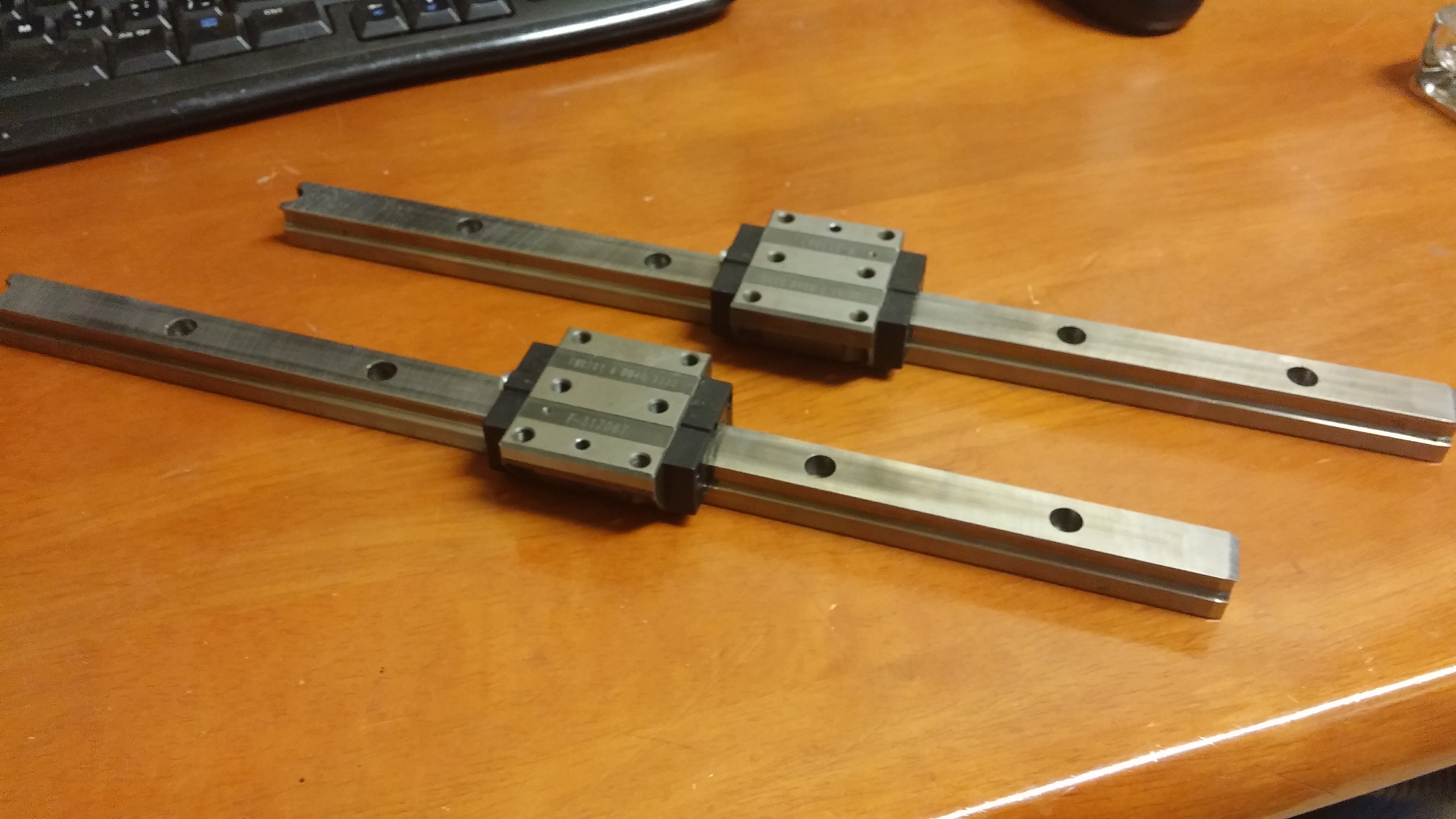 Prodám lineární vedení - 2x dráha , 2x vozíček , šířka dráhy 15mm , délka 340mm , použité ale plně funkční.