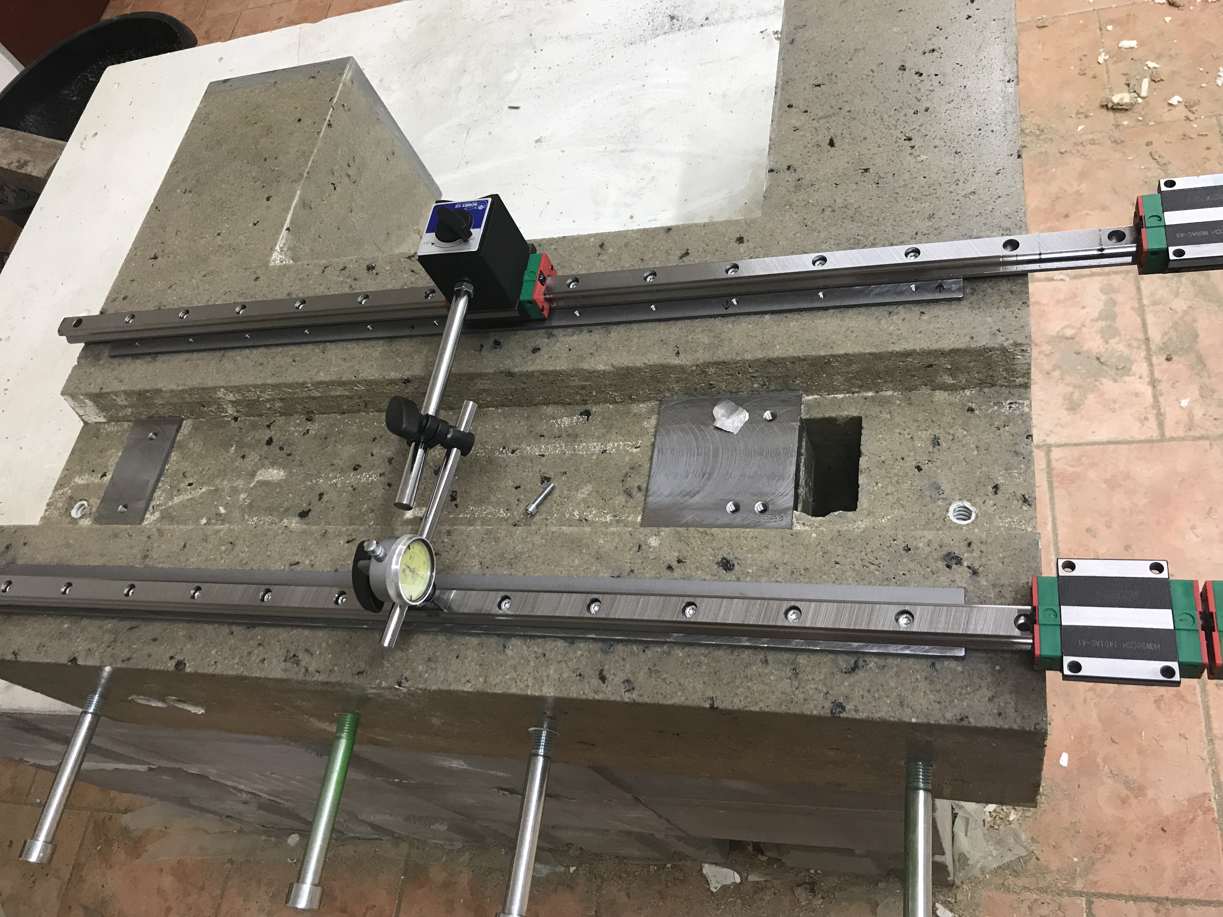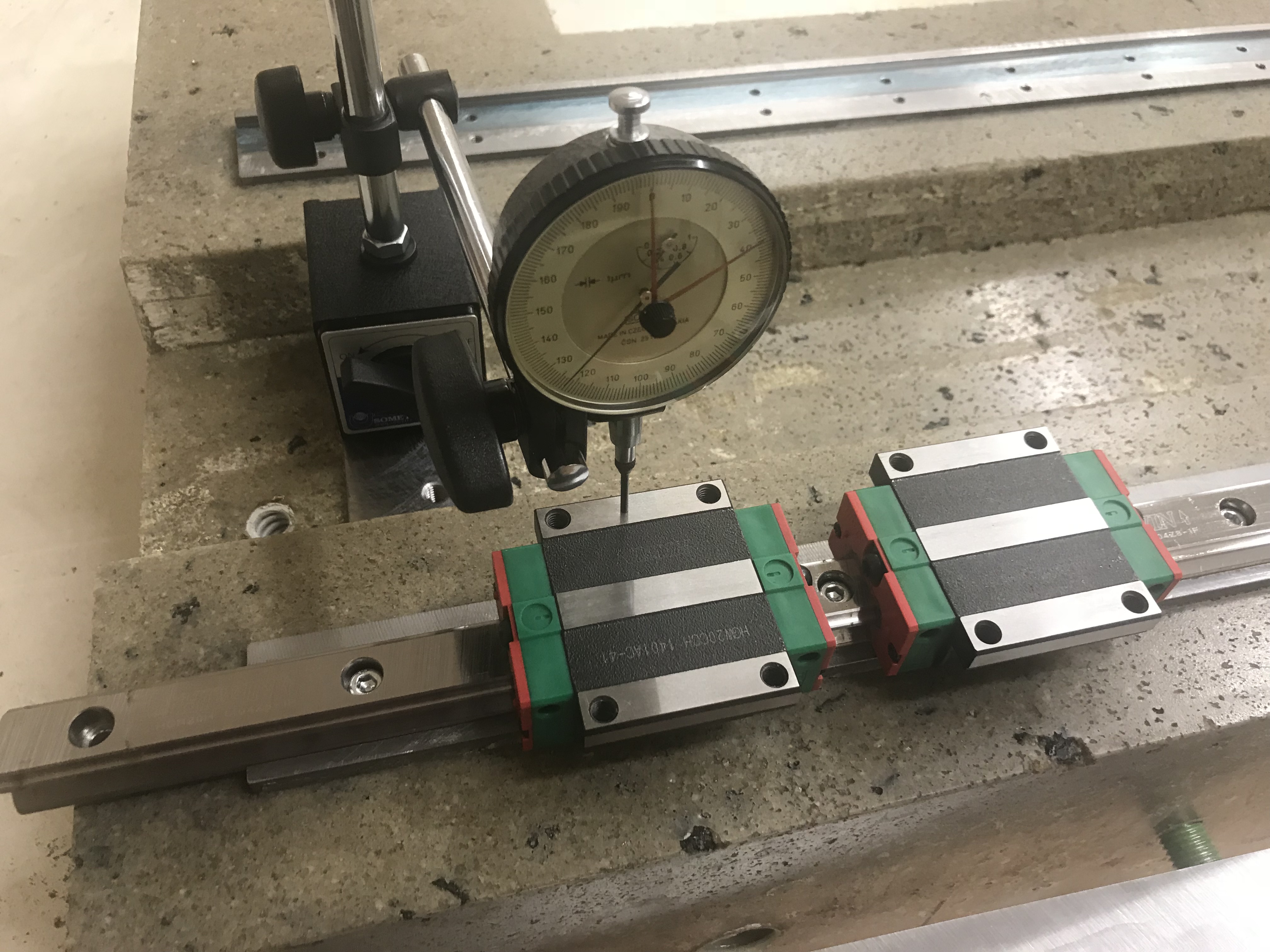 Nepletli jsme se....Vepr píše:Železné vložky v betonu pro přišroubování kolejnic Y jsou obě po ofrézování v prostřed prohnuté dolu o několik setin. Možná železné hranoly 40x40 mm při stárnutí ohnuly beton, nebo je ohnutý velký profi CNC na kterém mi to rovnali, nebo byl výrobek špatně upnutý, nebo je to normální tolerance. O kolik to je ohnuté nevím, odhaduji to podle vodováhyMusím pořídit nějaké přesné, metrové pravítko a zkusit pod něj strčit spárovou měrku. Až zjistím jak je odchylka velká nastane zase otázka jak odchylku odstranit, jestli brousit boule, nebo podkládat díry? Jen pro zajímavost, když vezmu vodováhu na které je napsáno že jeden dílek je 0,06 m/m na jeden metr, položím ji na dva vozíky vedle sebe a jezdím po volně položené kolejnici lineáru HIWIN,tak obě bublinky viditelně jezdí ze strany na stranu už po 30 centimetrech, na metru z kraje do kraje. Kolejnice je tedy zkroucená ve všech osách.