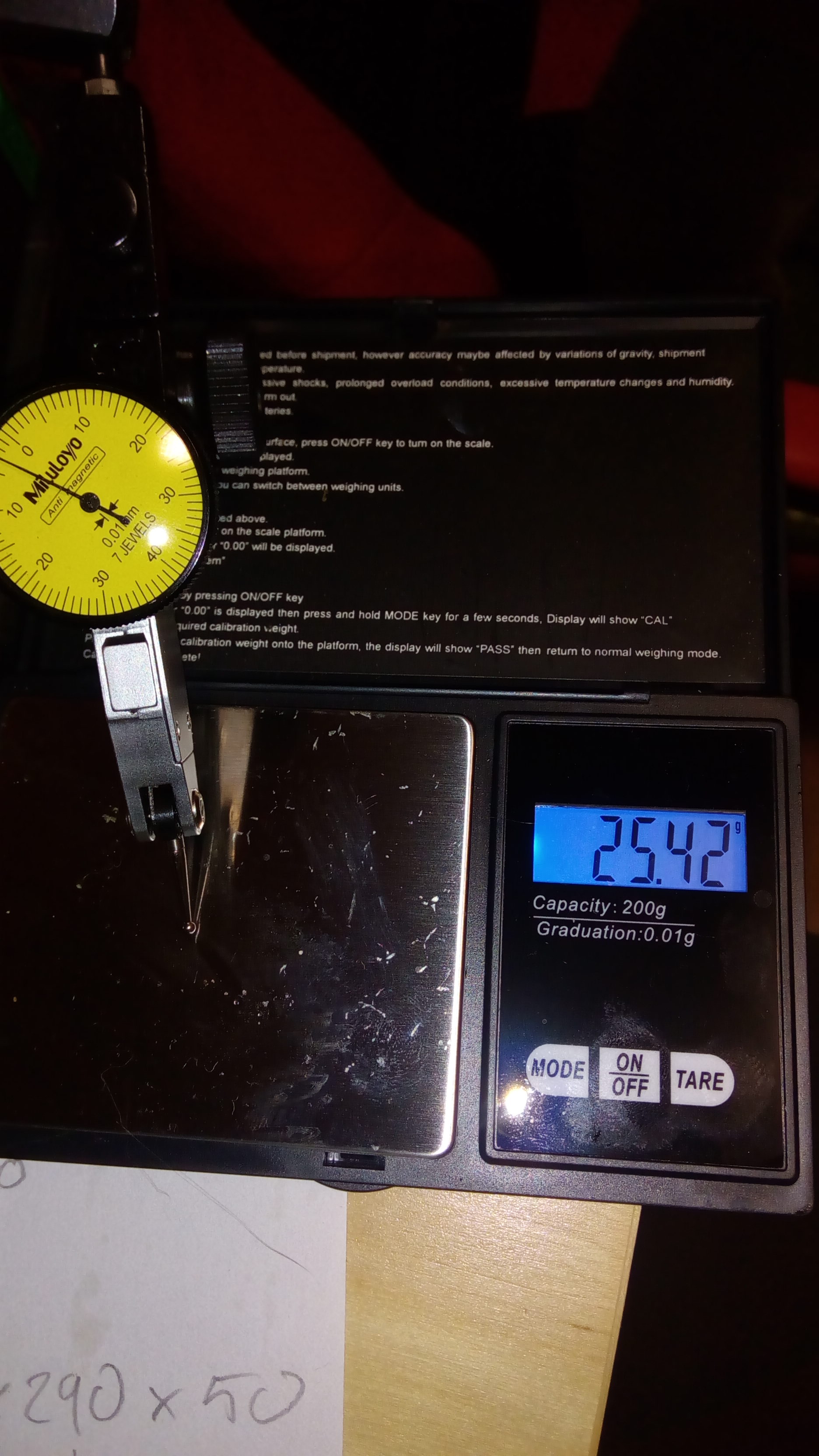 Dřive jsem pracoval ve firmě, kde byly tisícinové hodinky na každém stole a možná byly i daleko citlivější. Ručička se v nich netočila dolola,ale měla výchylku jen asi 45°a ty indikátory byly vždycky v měřícím přípravku co vážil snad od 10 do 20 kilo. Ručička byla tenká jako vlas a točila se na nějakým zkrouceným vlákně. V ruce se stal ukazatel uvnitř indikátoru neviditelným jak rychle sebou mrskal. To u toho tisícinovýho co mám není problém v prstech ručičku zastavit.