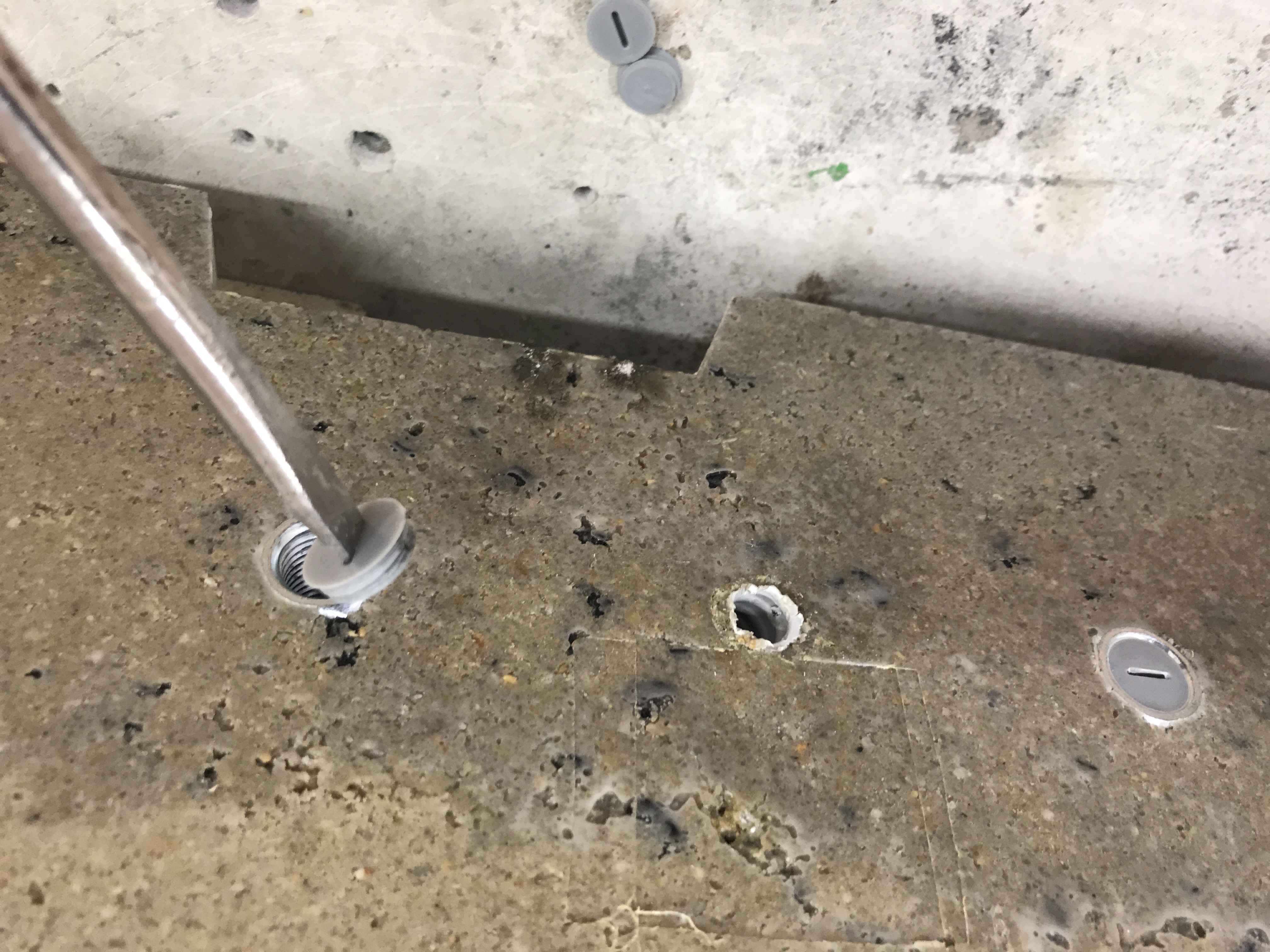 Díry jsem tedy nakonec převrtal na 16mm aby se mi je podařilo lépe naplnit tmelem-lepidlem.