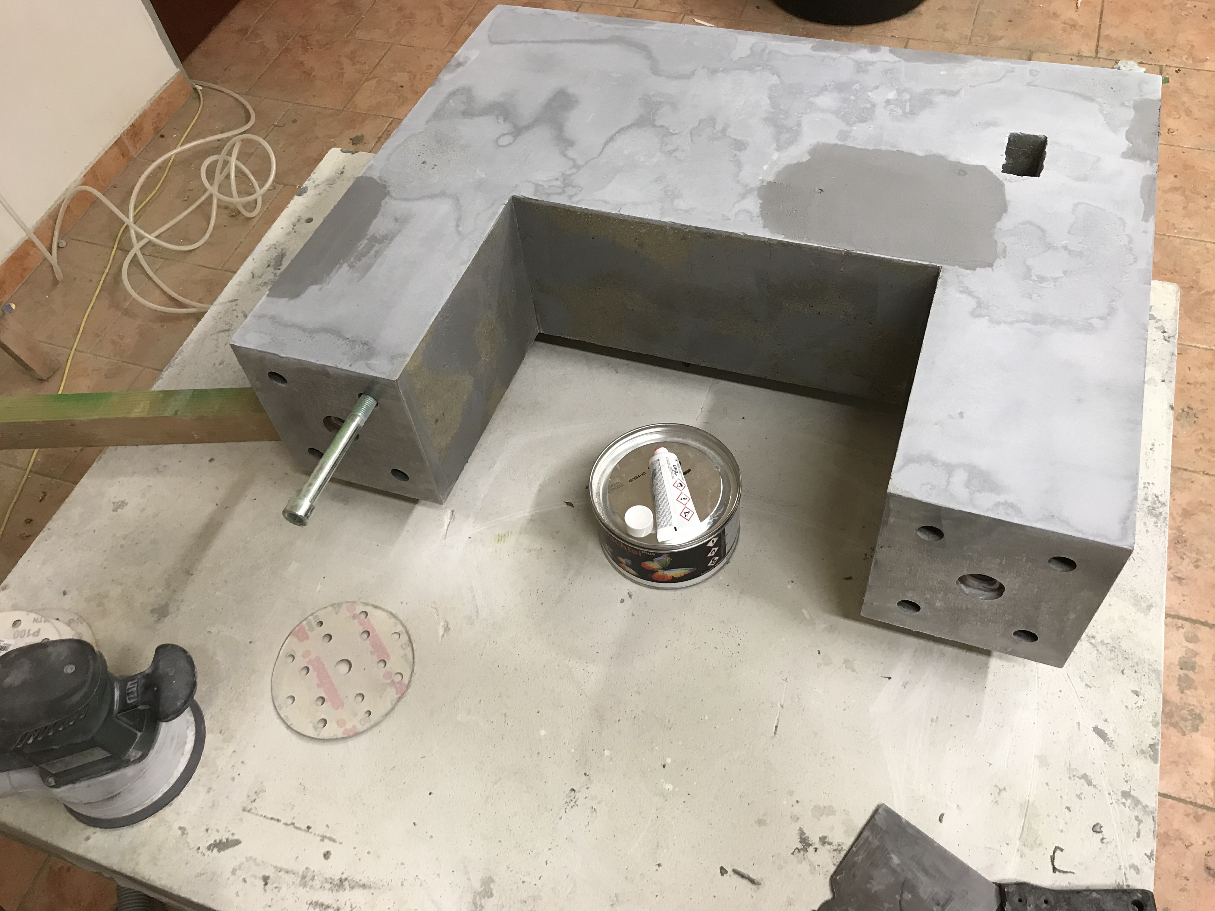 Dnes probíhá broušení a kitování portálu, jde nám to s kamarádem zatím daleko rychleji než když jsem dělal stůl, asi to bude tím že mu při tom moc nepřekážím.
