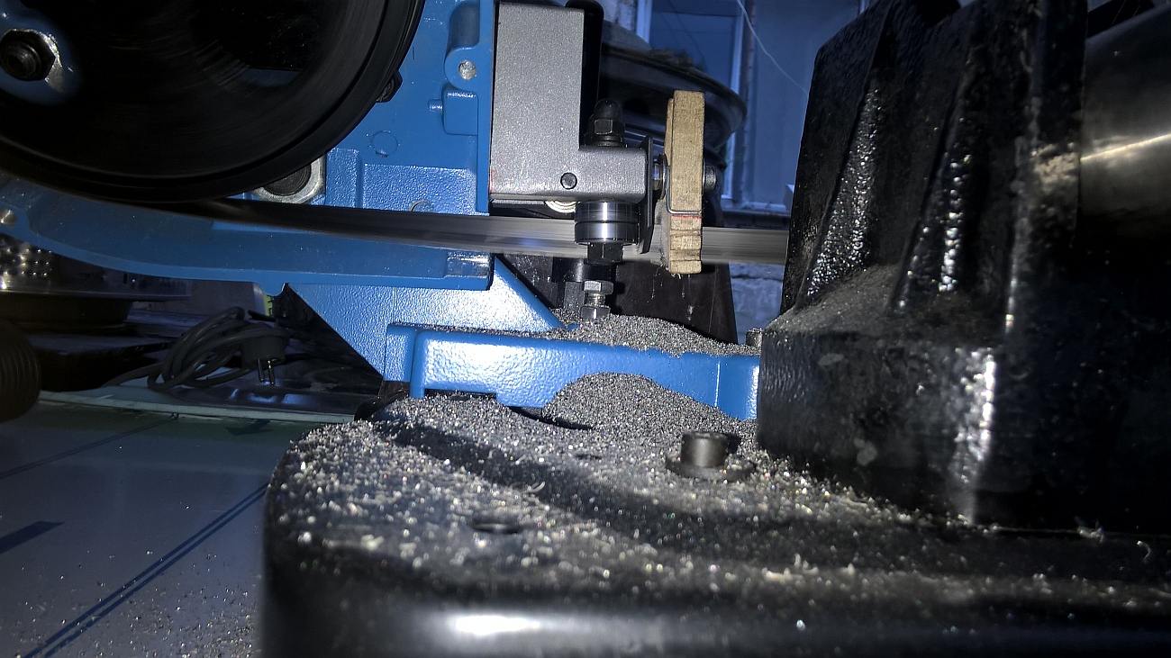 Volakedy som tým nahradil pôvodné vodítka na mojom Pilousovi. Funguje to dobre, ako pôvodné. Dôležité je, aby plátok nesústružil pilový pás, ale zároveň stieral piliny z rezania ktoré ulpia na páse- maličký zaleštený rádius na prvej hrane. Tiež som upravil držiaky vedení, aby sa pri posunutí hore/dole nevychýlili do strany, to pôvodné riešenie za moc nestálo.