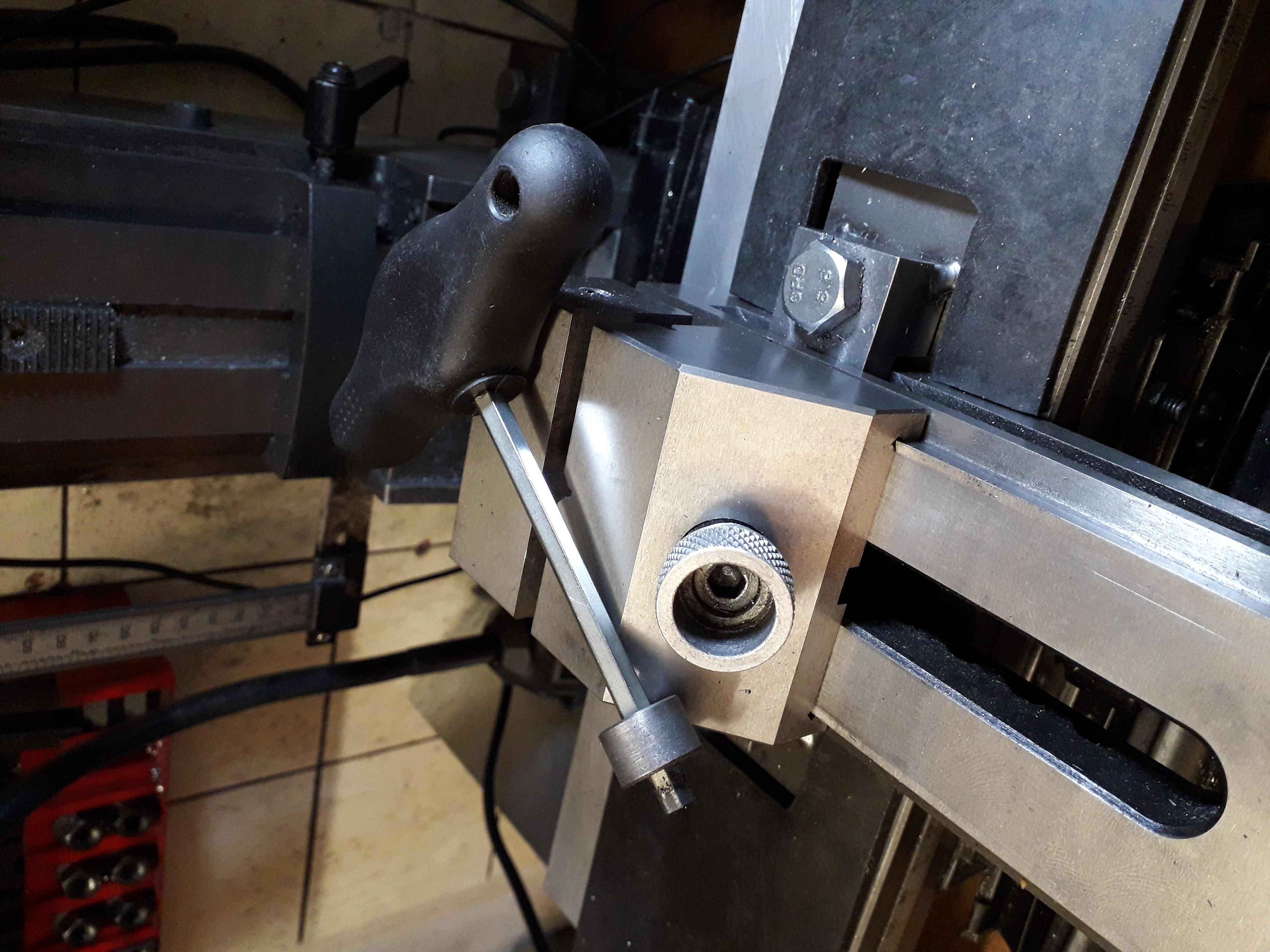 Taky jsem měl problém s "rozkvedlaným" vnitřním šestihranem a tak jsem vytočil a orádloval hlavičku a tu jsem nalisoval na nový šroub. Po posunutí čelisti rukou zlehka utáhnu a pak nasadím imbus, na kterém je naražený průměr, který zapadne do otvoru a to vždy jen v ose a nedochází tak k poškození vnitřního šestihranu. Když by se časem omačkal "kvalitní čínský" imbus na klíči, tak není problém část odbrousit a váleček poklepem posunout. Toto mám asi 2 roky a stále původní.