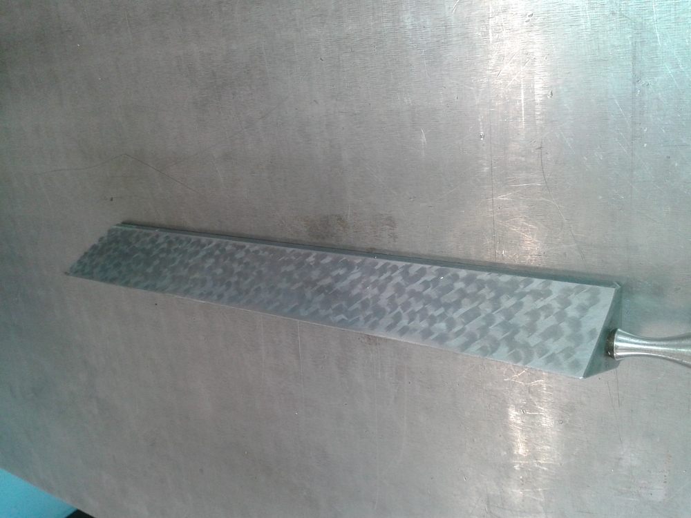 Na to pohladové zaškrabávanie používam škrabák ktorý má na brite menší rádius, a dokonale ostrý. Vzadu ho držať volne, vpredu pár cm od britu jemne pritláčať v strede. Krátkymi ťahmi dopredu písať štvorčeky- aká je šírka stopy tak dlhý je ťah.