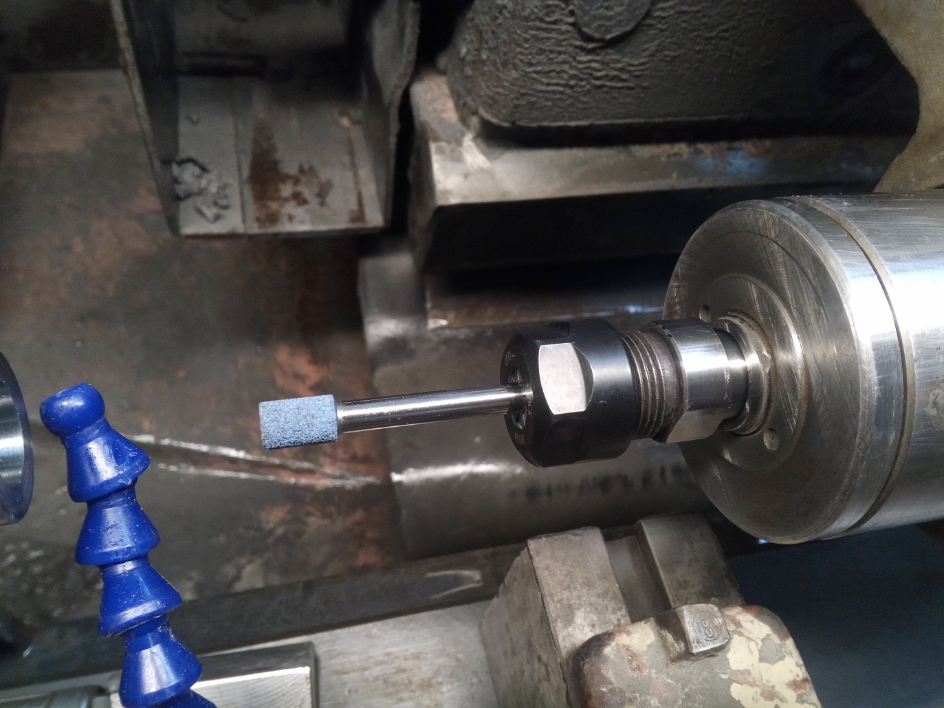 Na 2UD brúsime diery veľmi málo, väčšinou na BHU40, ale teraz som potreboval brúsiť dierku 4,3mm s vybrusovacím telieskom 4mm, takže osovo som to už musel nastaviť.