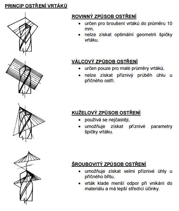 snažil jsem se v tom zorientovat a shrnu to takto - hlavní postupy broušení vrtáků