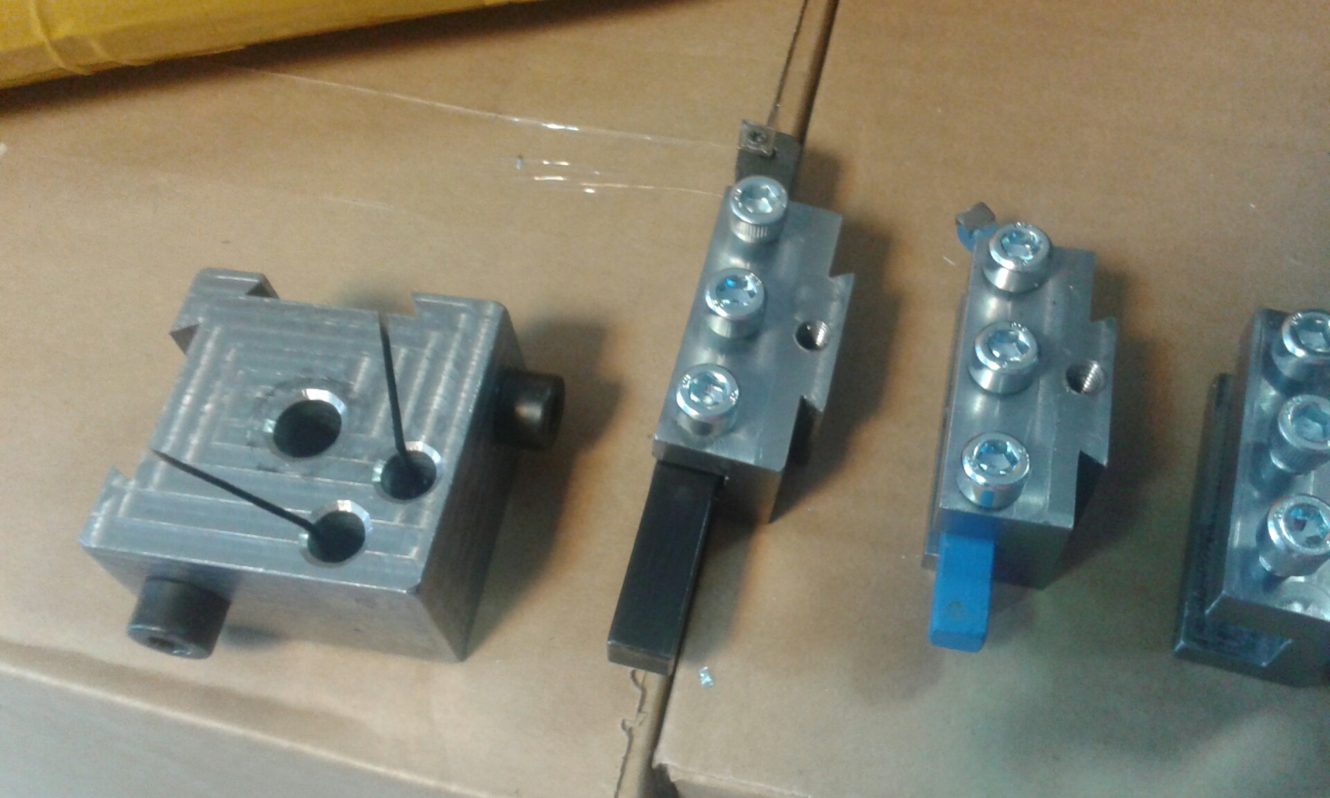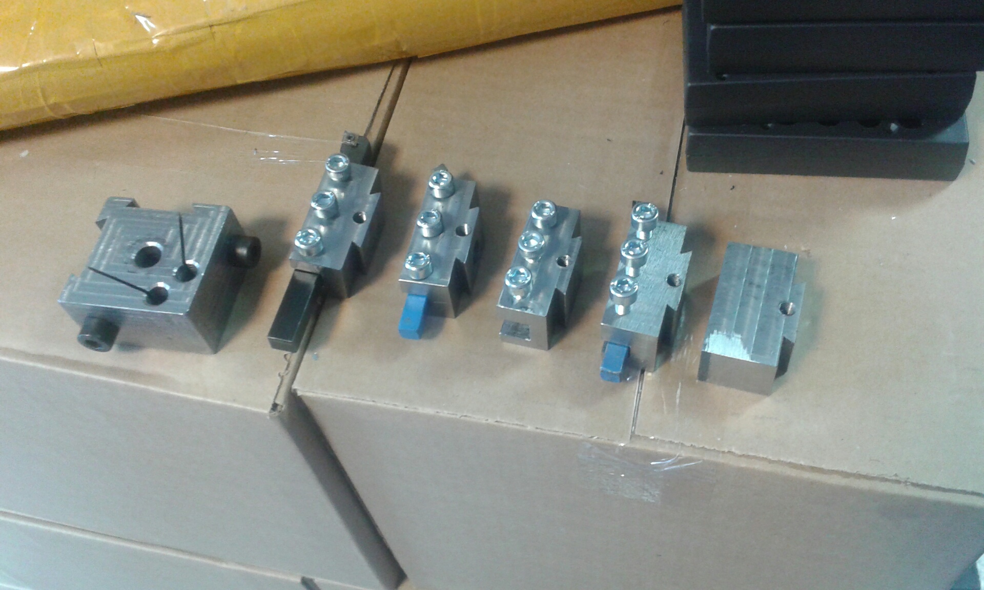 Samotne drziaky nozov maju vysku o 5-7mm nizsiu, aby to bolo kde posuvat. Robil som drziaky na noze 8 a 10mm, takze kazdy ma inu vysku.