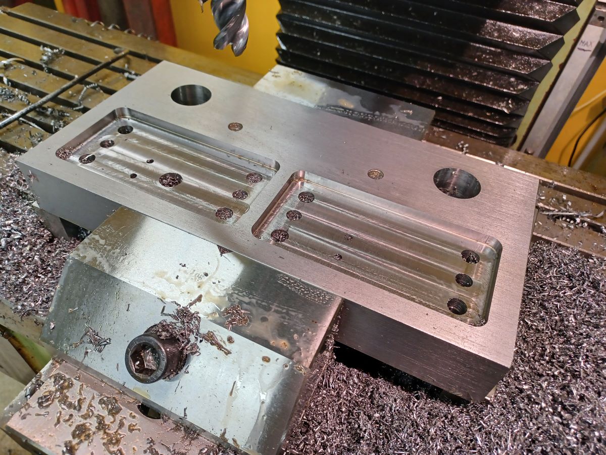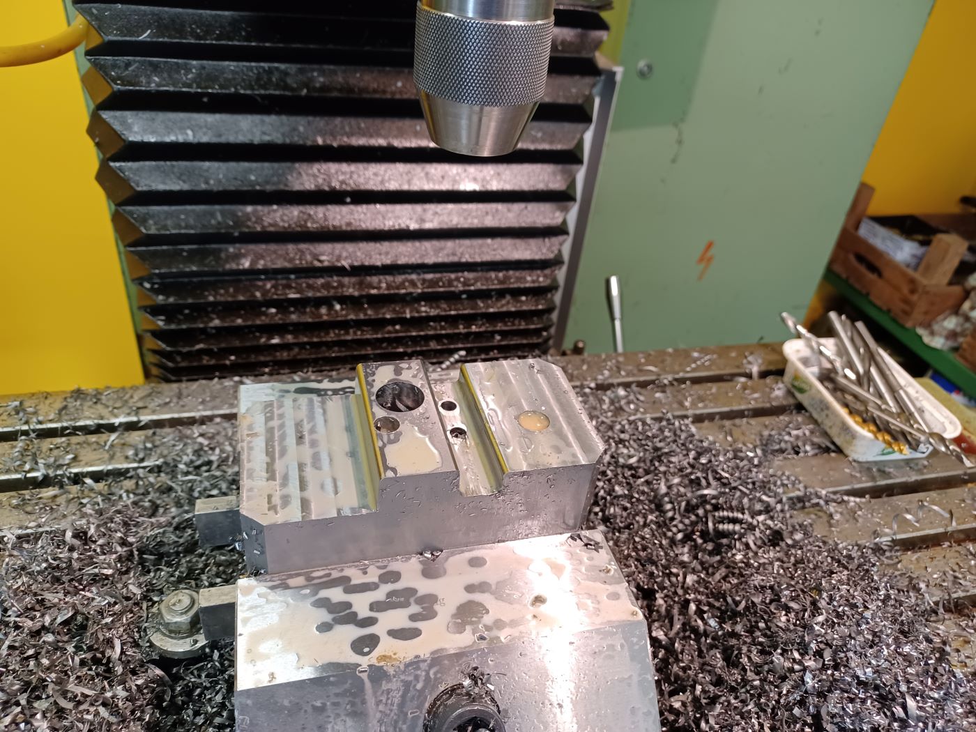 Kapsy jsou frézovaný TK 4břity D20, otáčky 800, posuv 100. Je to sice hluboko pod tabulkovejma hodnotama na TK, ale musim vycházet z vlastností mašiny svojí doby a absence krytování.