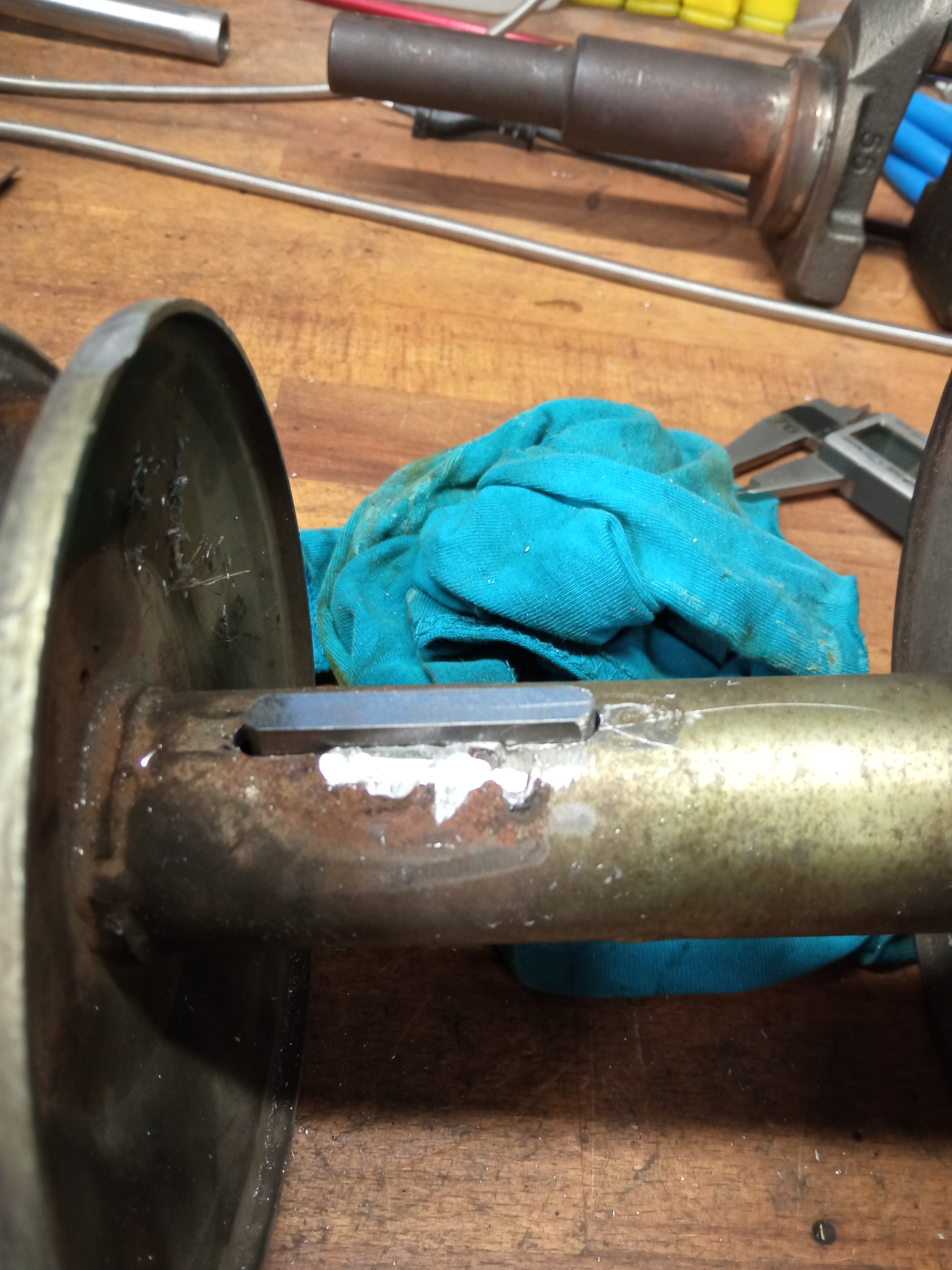 Dneska jsem doopravdy bastlil. Kámoš mi přinesl řemenici s klikou na traktůrek a že už mu podruhé rupnul klínek. Originál byl jen prolis v hřídeli a on to pak vytunil 15mm klínkem a elektrodou. Odfrézovat sváry, projet drážku 40mm, vyfrézovat 6 klínek ze svařitelné oceli, protože uhlíková ocel C45 je blbě svařitelná a teď už jen zavařit tak, aby se hřídel nestáhla.