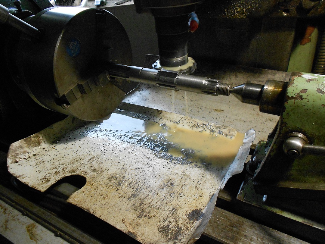Jestli myslíš celkovou fotku sestavy soustruhu ve frézovacím módu, tak nejlépe je to asi vidět zde. Vyloženě frézovaná je jen ta jedna plocha, pak jsou na tom ještě udělané ty dva ozávitované otvory, zbytek je soustružený (a smirkovaný