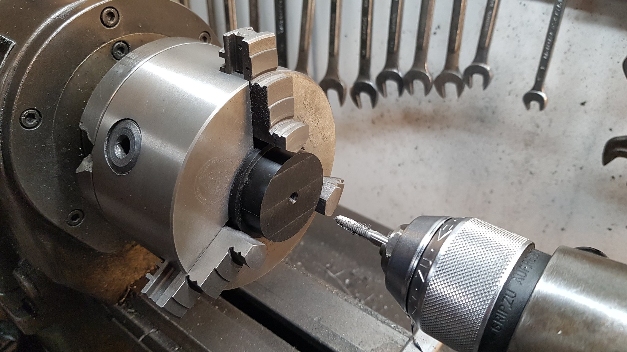 I když to byla prkotina, chtěl jsem, aby to bylo vyvrtané pěkně v ose a nějak to pak vypadalo, navíc to nebylo o moc složitější, než to udělat nějak v ruce akuvrtačkou nebo jak jinak by to "normální" (tj. soustruh nevlastnící