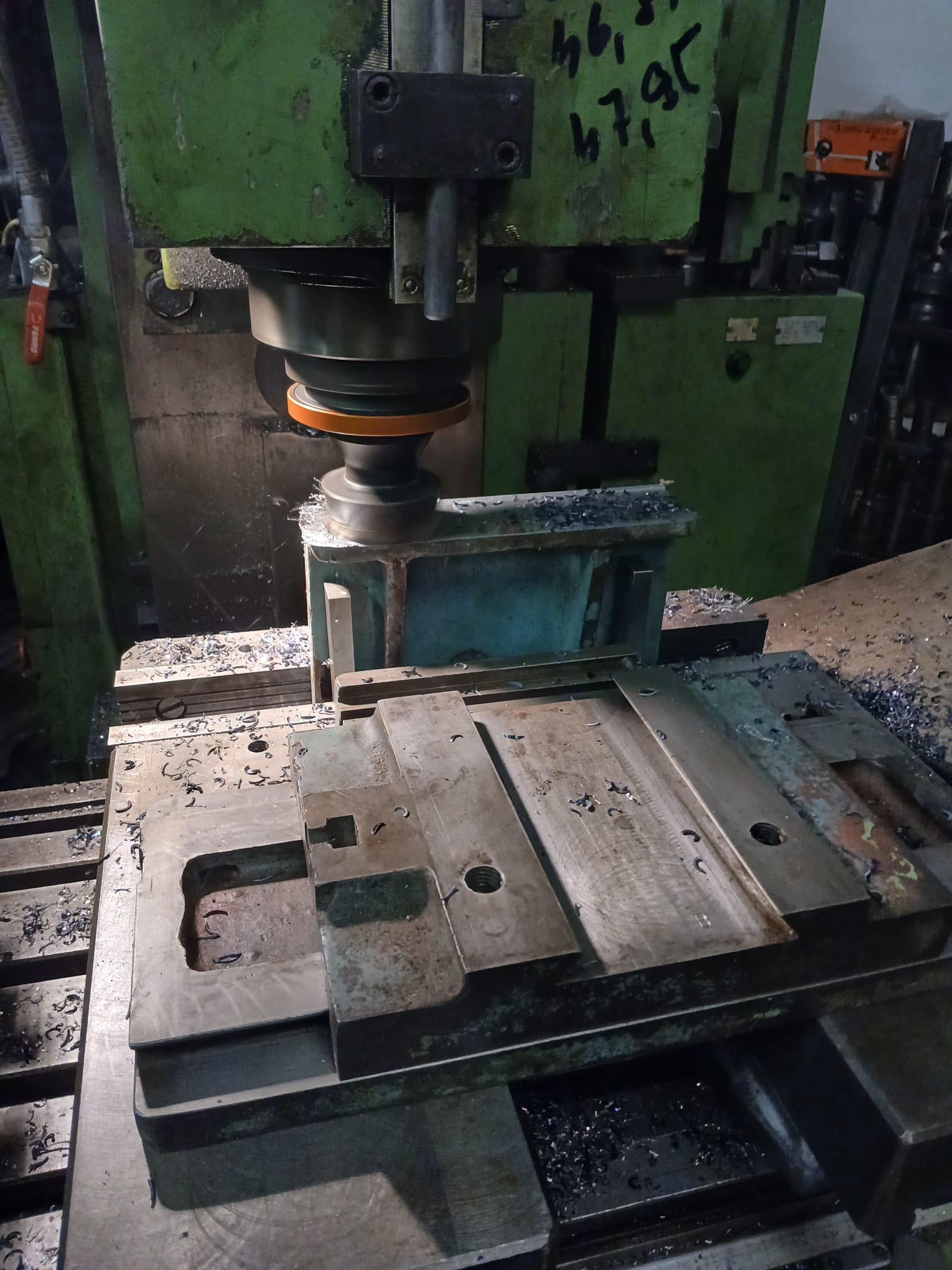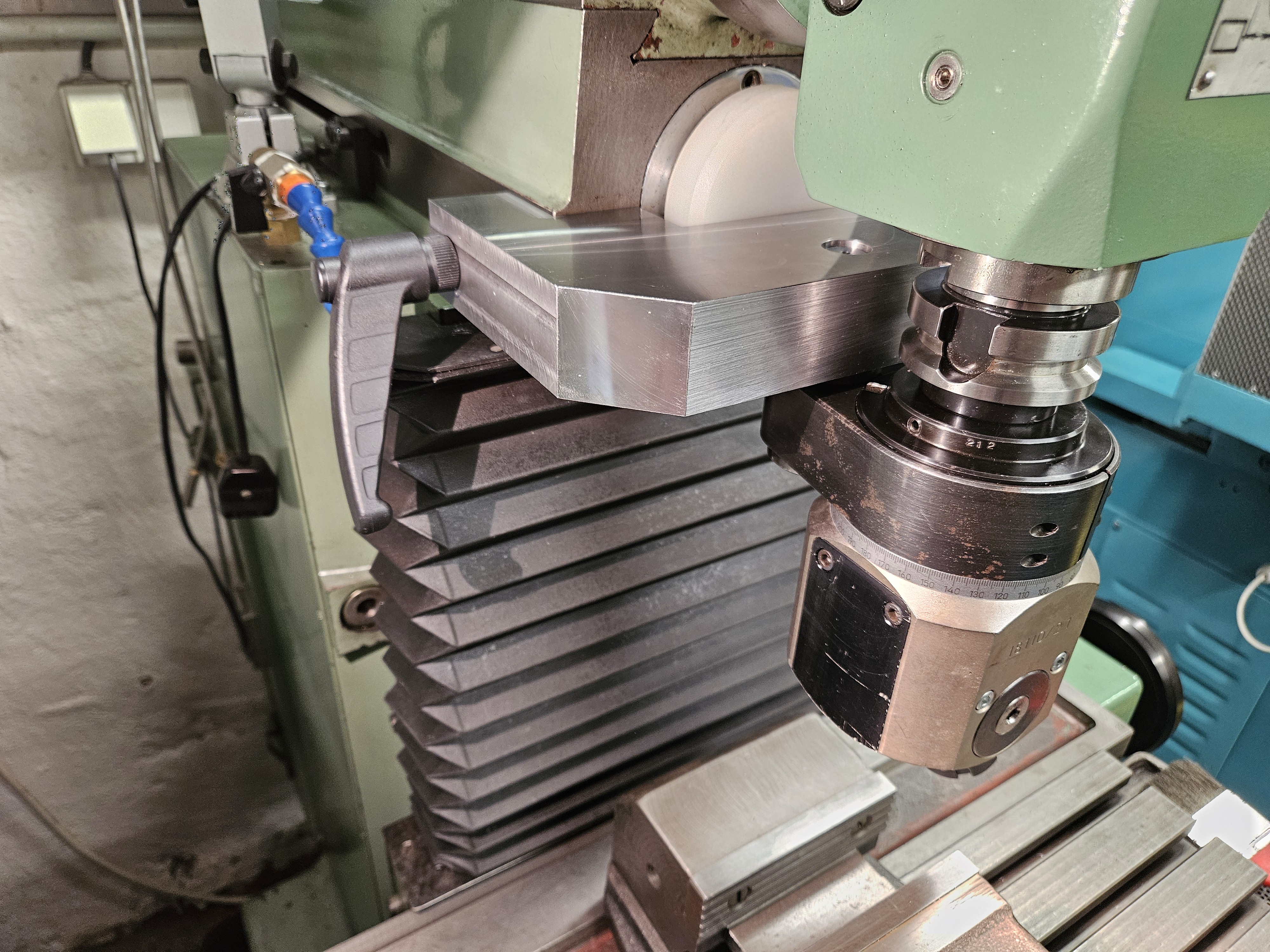 Lícna strana unášača bola robená na jedno upnutie (otvor d63, čelo, drážka, skrutky) - následne v deličke frézované vybratia na upínacie skrutky - reverzne zahĺbené hlavy skrutiek - a späť na horizontku. upnúť na vreteno a sústružiť vnútorný otvor na horizontke aby ladil s osou. Do otvoru bola zalisovaná kalená brúsená dutina SK40. Na sústruhu medzi hrotmi spravený vonkajší kužeľ. Na prenos upínacej sily je použité štandardné kužeľové súkolie so šikmými kalenými zubami od mädleru (ponúkalo k rozmerom najväčší prenos momentu) osadené v bronzovom puzdre.