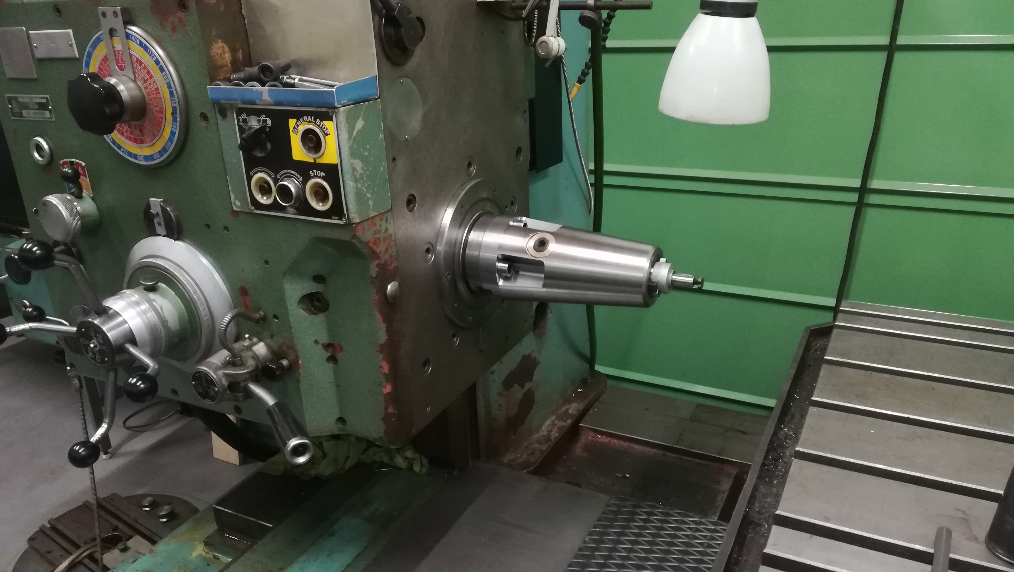 Vehement bol včera prvý raz založený na horizontku, ešte čnemal tú česť hrýzť prvé špony, dnes sa doladia detaily a prebehne meranie. Každopádne som rád že nahanobené náradie a vyvrtavacie tyče SK40 sa budú dať využiť.