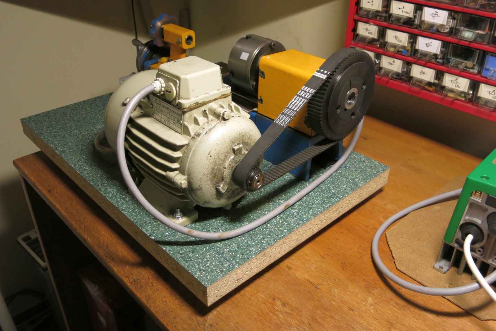 Základnú dosku samozrejme má, nástroj je upnutý v prizmovom zveráku a pod nim je priestor na odpad.