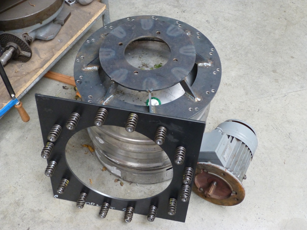 v tuto chvíli bude mít motor s excentrem svislou osu otáčení, tj. shodnou s bubnem