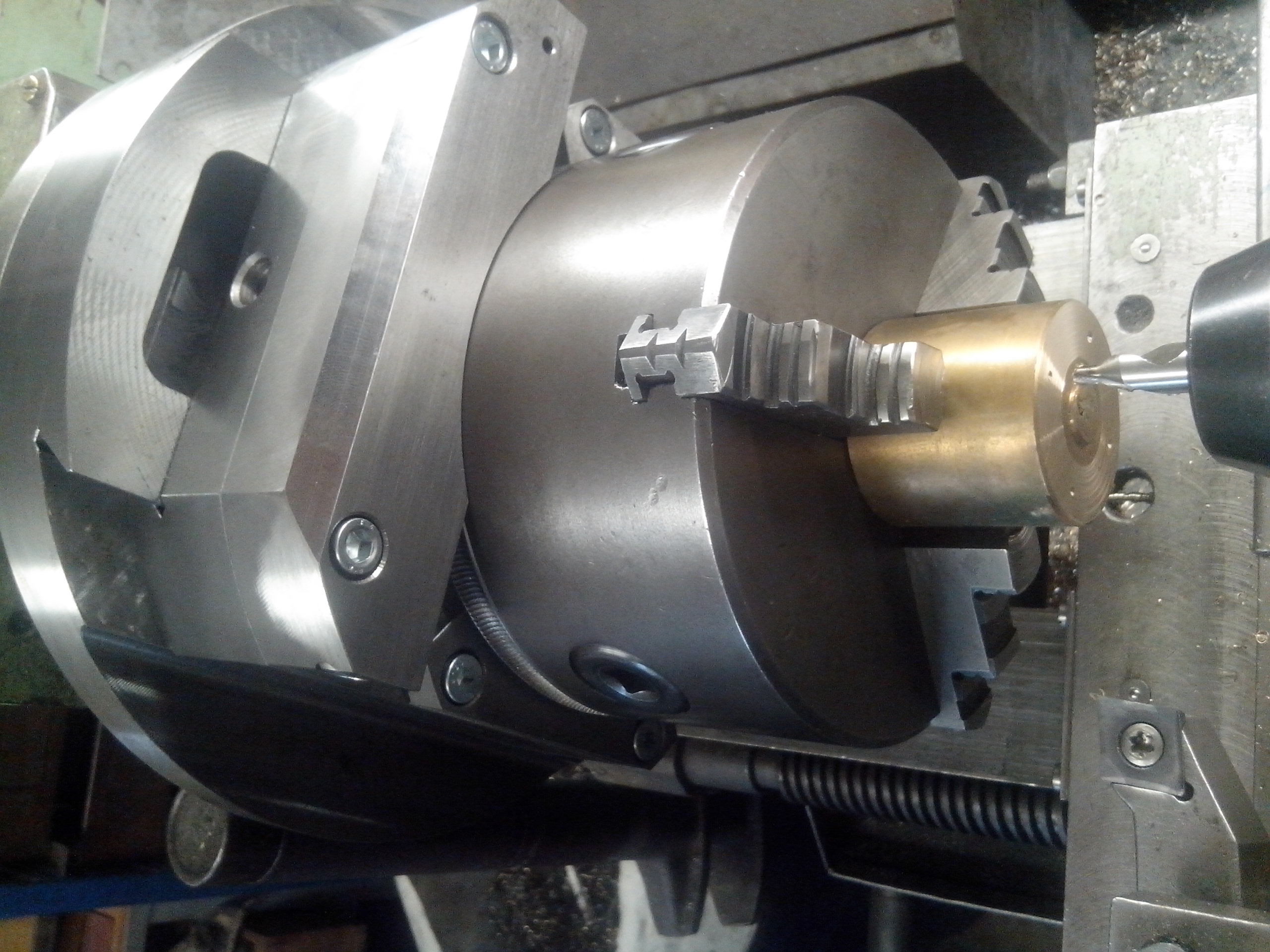 Hotovo, excentrický přípravek na soustruh, maximální excentricita od středu 50 mm, možnost dělení jako u děličky 24 dílků + jemné doladění šnekem. Jen ty ložiska ve vřeteníku dostávají dost zabrat, jak to šmajdá. Původně navrženo na výrobu klikovek na modely motorů, ale asi to využiji i na jiné díly.