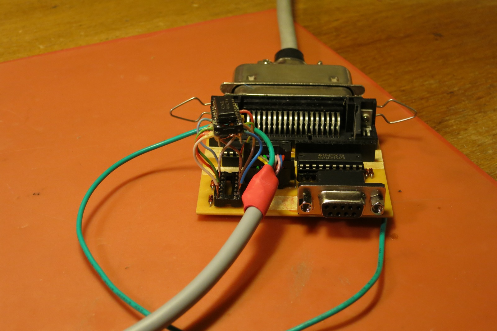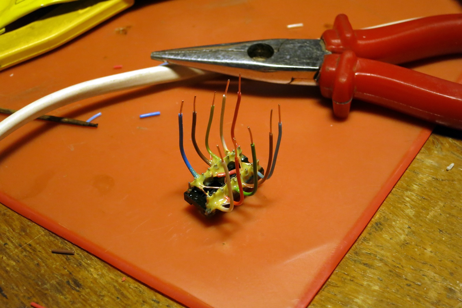Při návrhu PCB se mi malinko popletlo číslování pinů u mini-DIN konektoru, ze šesti spojů jsem trefil rovných nula spojů, tak jsem to musel takto zalátat