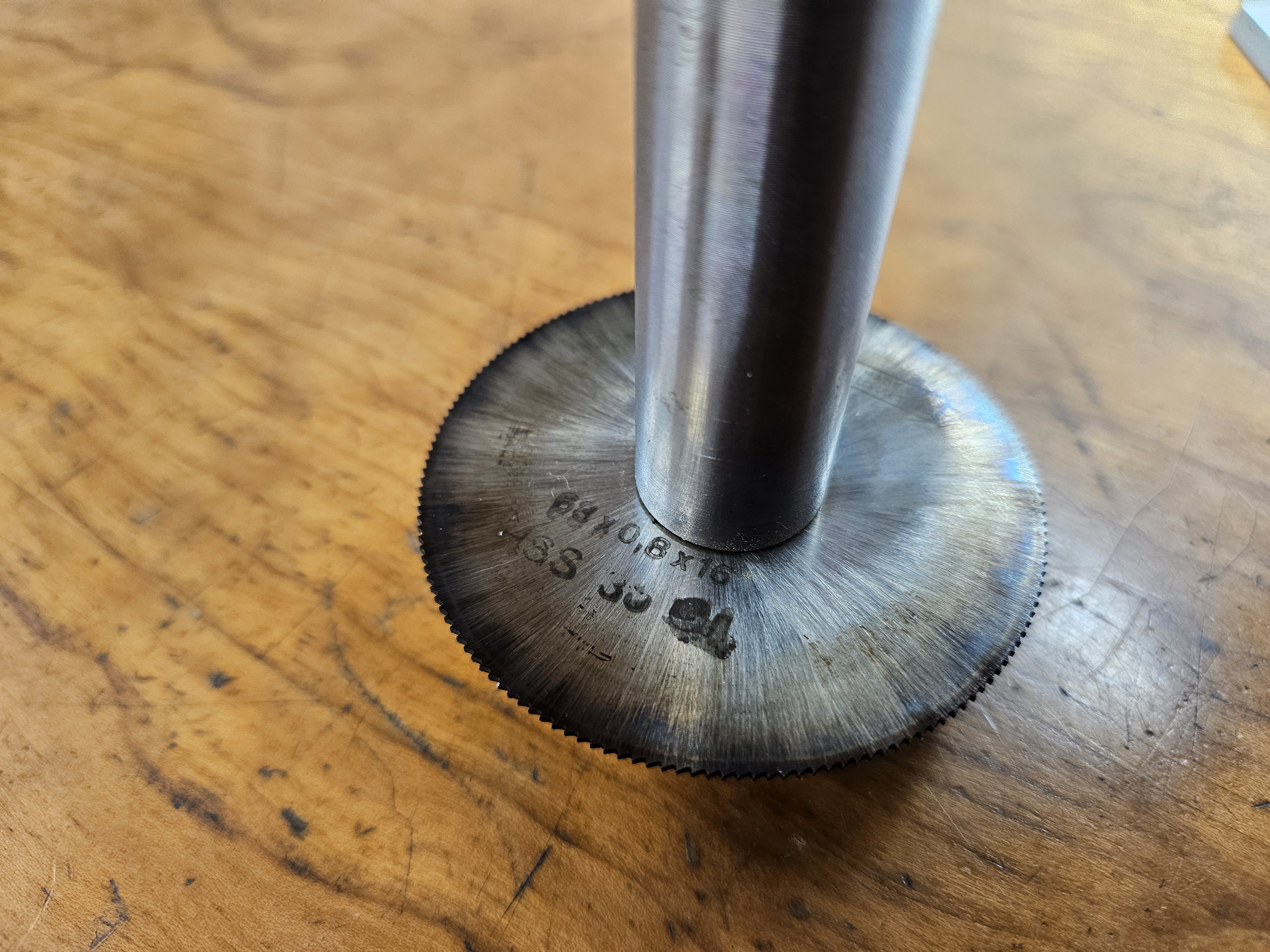 Potřebuju drážky cca 0,8mm, jasně pilku 63*0,8 najdu, novou pilanu z dob socíku, ještě zabalenou. Nenajdu na ní trn, no tak si na 16ku stopku vytočím z dvacítky, osadím, ozávituju, nasadím, paráda. Nevšimnu si že na fence mám posuv 400, najedu růčo, šup posuv, spálená hned, reakční doba je pomalejší, no...