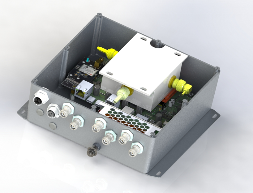 prochaska> ty kvadriky je aktivni splitter, je to soucast maleho prumysloveho pocitace co jsem delal. Spitter je prisroubovany k viku krabicky a rozdeluje GNSS signal. Bere ho z vnejsi anteny, rozdvoji, pouzije pro pocitac a zase vraci jeste zesileny ven. Zaroven, protoze je Al, slouzi jako heatsink resp. tepelny most odvadejici teplo od procesoru atd. a od vede ho do te siluminove skrinky.