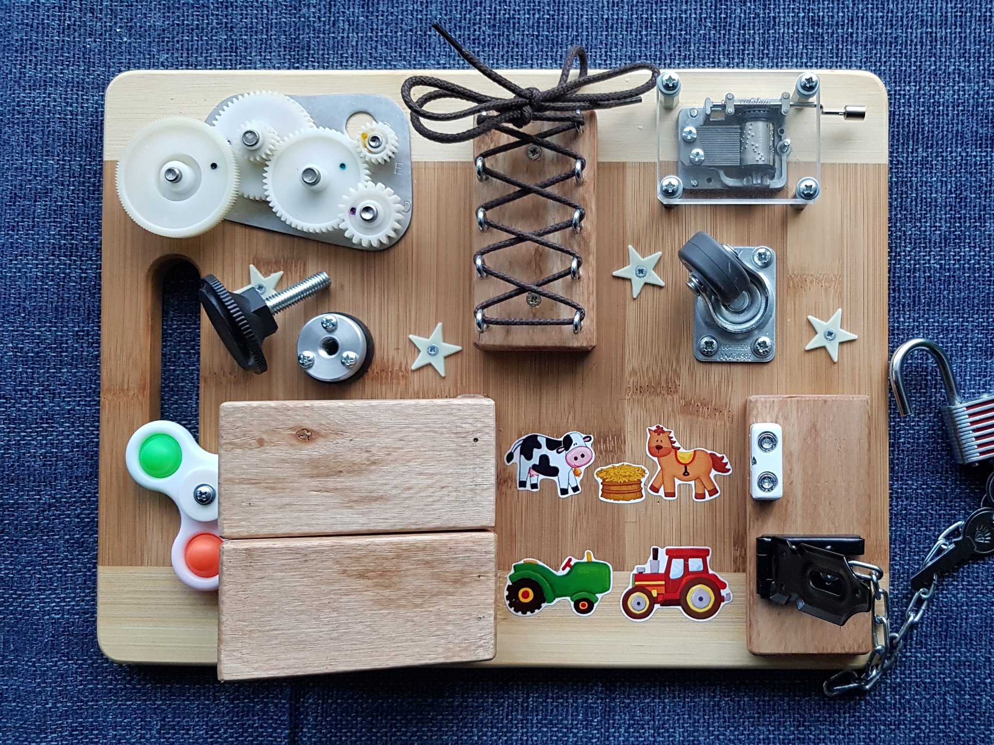 Áno, je to skvelá vec. Zaujímavé je sledovať, čo dieťa s tých vecí zaujme a čo nie. Ja som vyrábal také prkno asi 100x70 cm s asi 20 rôznymi vecami. Dlhú dobu jediné čo juniora s tých všetkých vecí zaujímalo bol labyrint z PVC hajzltrubiek, kde zhora do lievika hodil pingpongáč a na druhej strane vypadol von