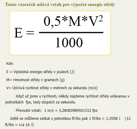 Rychlost cca 210m/s se střelou 850 grainů/55 gramů = 1210J