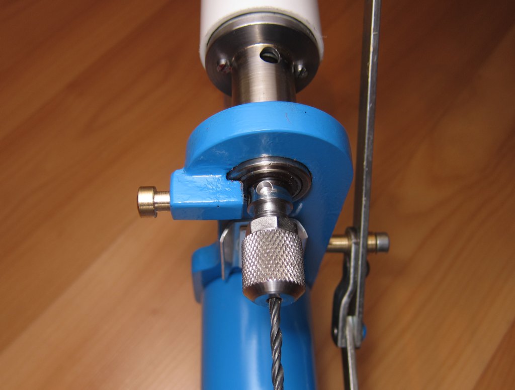 Stavěl jsem z toho, co dům dal. Základna je z U 100, držák motoru z plocháče 10mm, silnější tyč z předního tlumiče škodovky. Z tiskárny je zadní tyč, motor, materiál na hřídel, upínač kleštin. Páky z kování od okna, je tam tuším i kus napínáku na rozvodový řemen :-) Osvětlení pracovní plochy zajišťuje 6 ledek,PWM regulace řídí otáčky od 0 do maxima.