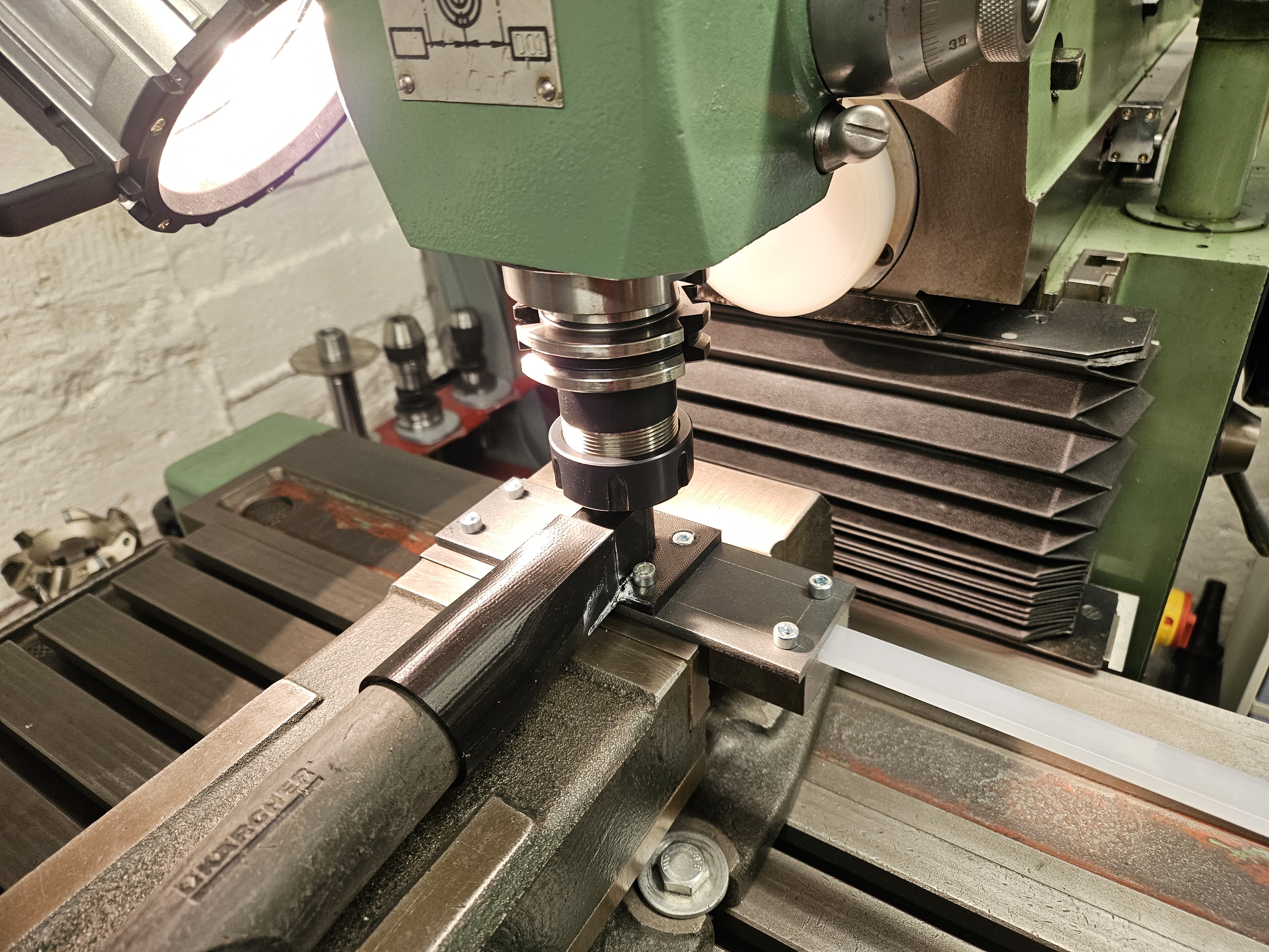 tak po dovolené :? :( včera přípravek na frézování plastového profilu, ano bude se ručně protahovat pod nástrojem, ubírá se malinko, ale je to nutné :mrgreen: