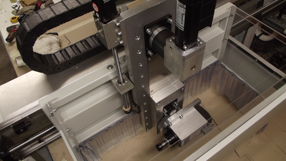 Na vreteno pride koš s odsavaním a bude to zakryté a navyše zuby budem mazať suchým teflonom aby nekapol olej na drevo.Ešte to nie je dokončené.