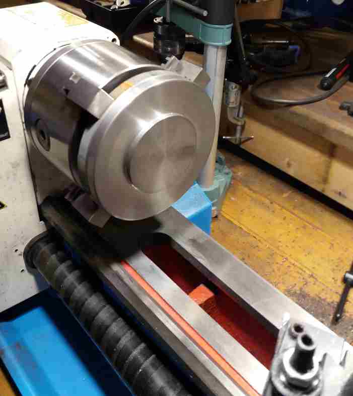Jako materál jsem použil litinu z UNIBARu pruměru 100mm Unibar 250 Pak jsme si změřil Pro přípravek je 100 mm dostatečných.