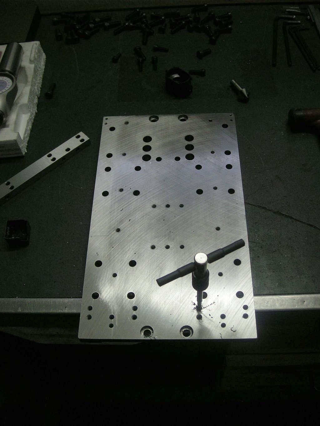 Portál pro osu "Y" je kompletní a zbývá ještě osa "Z". Zde jsem se rozhodoval, jestli volit pevnou kolejnici s motorem a jezdící vozíky nebo pevné vozíky a jezdící kolejnice s motorem. Nakonec jsem zvolil první variantu i když zde na fóru je řada konstrukcí v druhé variantě. Výsledkem je tato deska, která spojuje osu "Y" a "Z". Při návrhu jsem zjistil, že je to poměrně klíčový díl celé konstrukce. Od něho se odvíjí např. výška bočnic portálu.