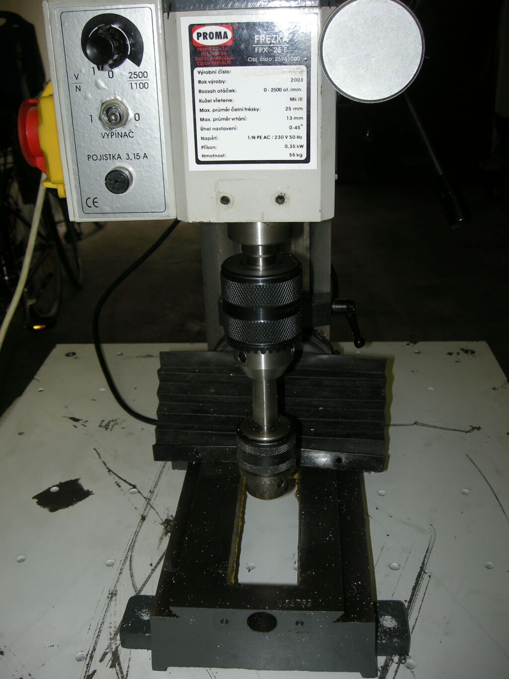 Vřeteno "ELTE" typ PE2 9/2 RR; 230VAC; 1kW; 18000ot; kleština ER20 dle štítku na vřetenu. Je s integrovaným měničem ale ten se dá samozřejmě demontovat a může se připojit na externí. Maximální frekvence vřetene pak může činit dle manuálu 400Hz. Odkaz na tento typ vřetene zde již na fóru proběhl a na svých strojích je používá např. firma "BZT":