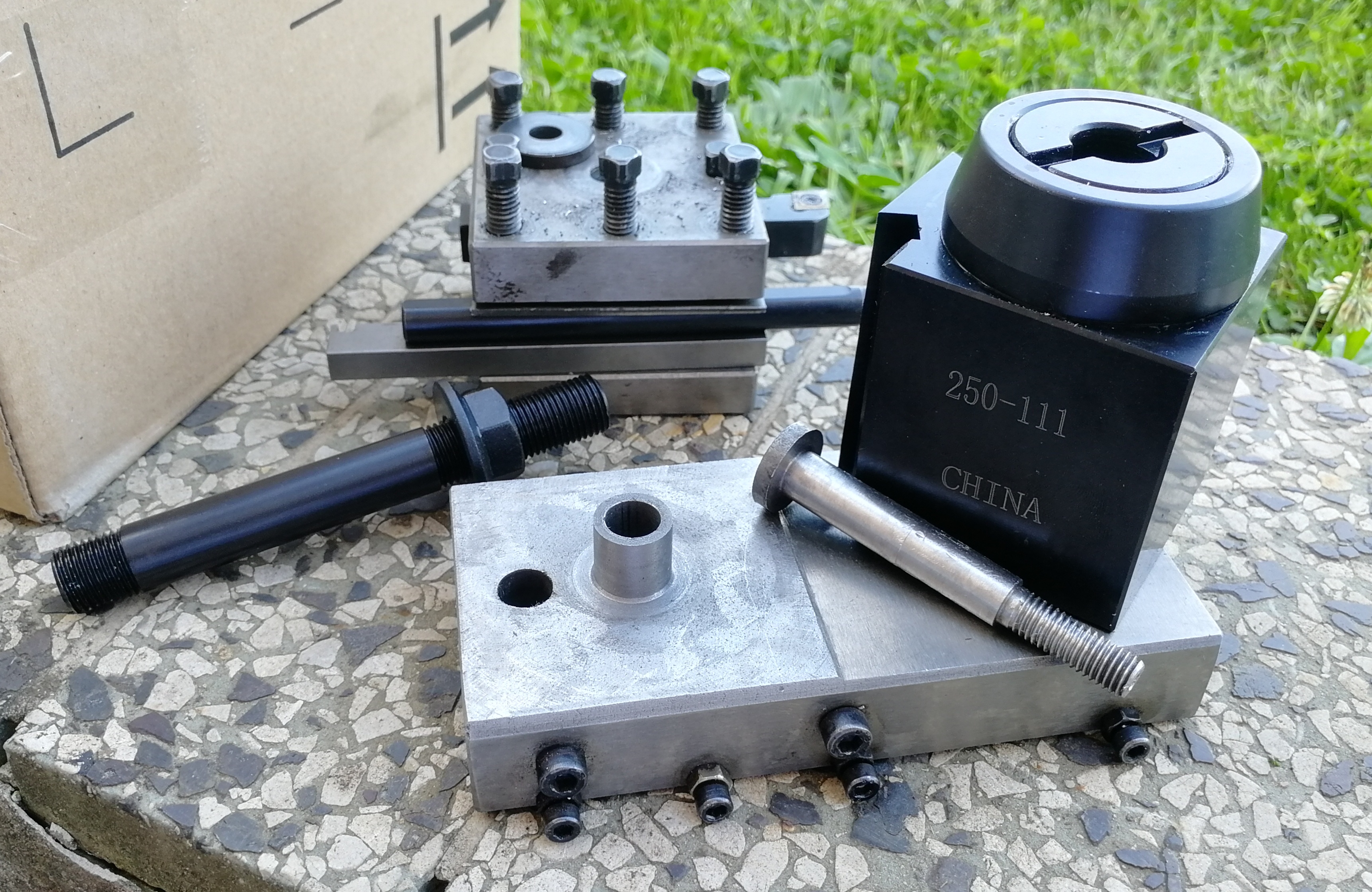 Nejake fotky z montaze. Keby som daval vacsi pozor, trebalo tu stredovu dieru v skrutke (v upinaci) prejst na sustruhu pac ten vnutorny otvor nic moc sisoid.
