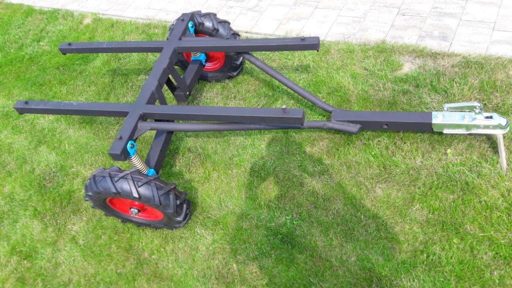 Jedno kolo má nosnost 170 kilo. Čtyřkolka samotná má hmotnost 110 kilo. Co si tak myslíte, že to utáhne? Sice je to navrhnutý tak, aby se na to dal dát metr dřeva podél (korbička 110 cm), ale pár kousků, ne celej metr. Ten má nějakou tunu tuším :) . Jelikož kola nejsou ani hnaný, ani bržděný, tak je asi fuk, jak jde vzorek. Ale není problém přehodit navzájem.