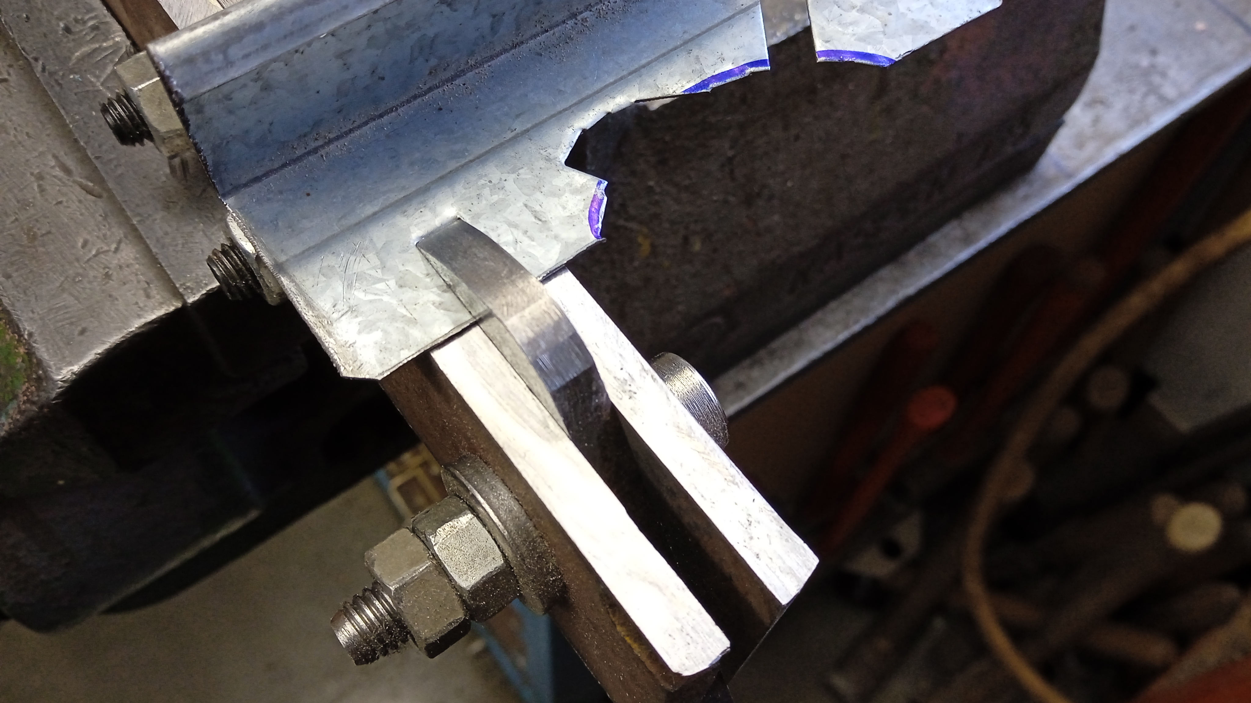 Ahoj, není to sice dnešní výrobek, ale snad to sem můžu dát. Dělal jsem si prostřihovací nůžky. Je to vybroušené flexou z 6mm hardoxu, číslo nevím, ale vrtal jsem to tvrdokovem. Ne že by střihaly špatně, hliník 1,5 nebo tenký pozink jde dobře, stačí mi to. Poslední fotka ukazuje jedno "zakousnutí". Chtěl bych je v lepším provedení, možná s tenším nožem, i když na střihání čelem je to fajn jak to je. Upnutí ve svěráku mi vyhovuje, mám cit. Nedá se to někde koupit? Nebo jak děláte "vystřihovánky"?