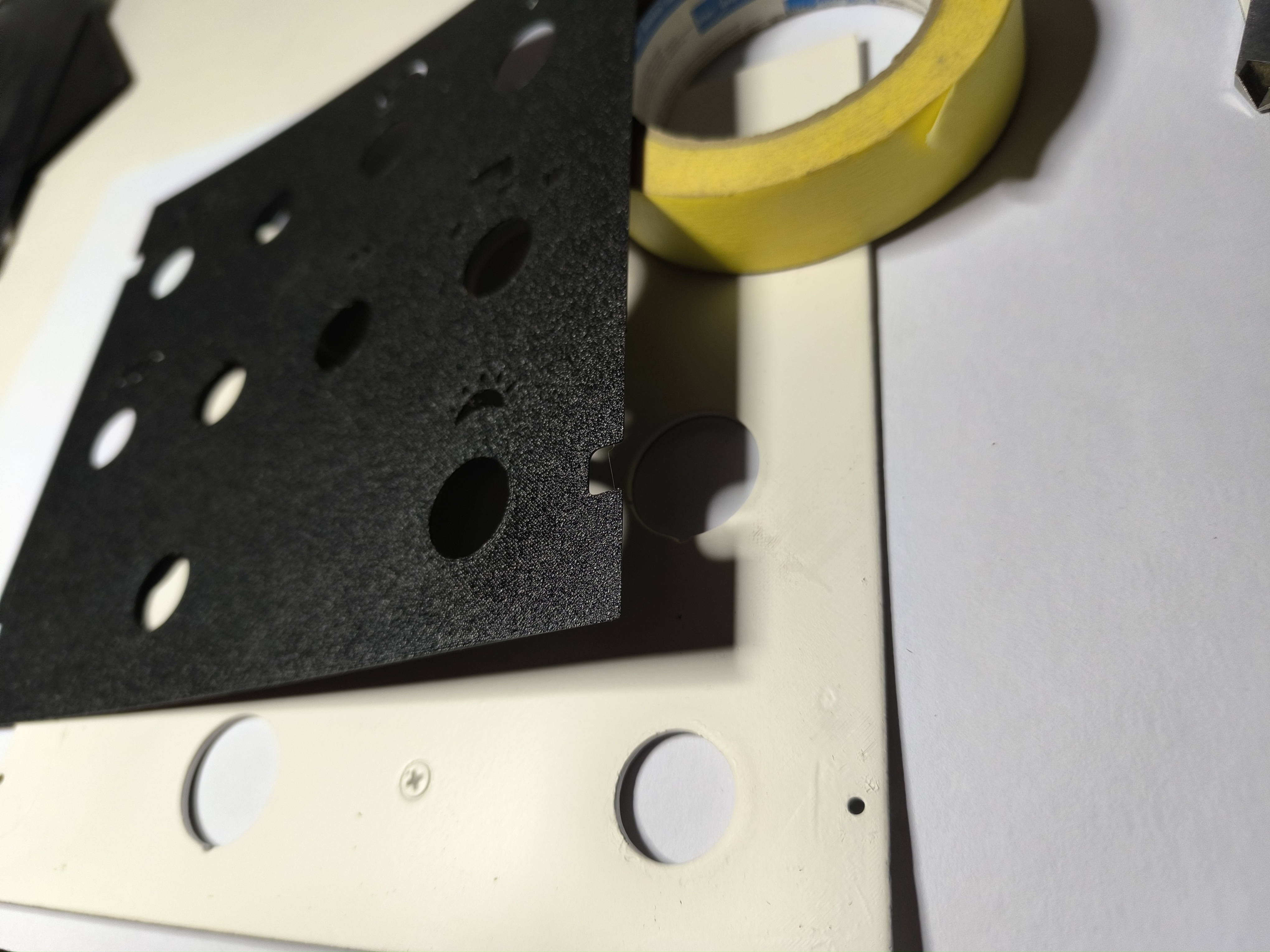 Vyřešil jsem to tak, že jsem vytiskl z PETG náhradu hliníkového překryvného plechu. Symboly jsou děravé skrz a podkladový ocelový plech je nastříkán na bílo. Viz fotka, kterou jsem přiložil. To PETG je cca 0,7 mm tlusté, takže nepředpokládám, že by je bylo možné proděravět ohmatáním. Podkladová bílá barva je až za tímto překryvným PETG, takže ji také nelze ohmatat. Pro ilustraci přikládám expandovaný pohled.