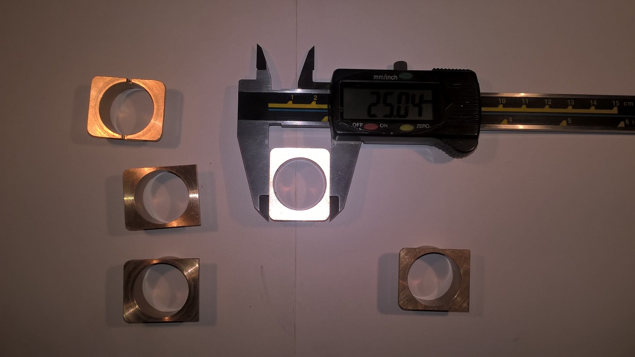 soustružení před 14 dny, frézování minulý týden, hlavně o víkendu. Frézoval jsem to na číně FP-25, není to žádný zázrak, ale +/- 0,02 se tam dá dobře dosáhnout. Na foto je posuvka, měří to volnou míru, kdybych se víc snažil, určitě bych to stáhl na nulu (posuvka ale taky neměří přesně, viděl bych to tak +/- 0,01).