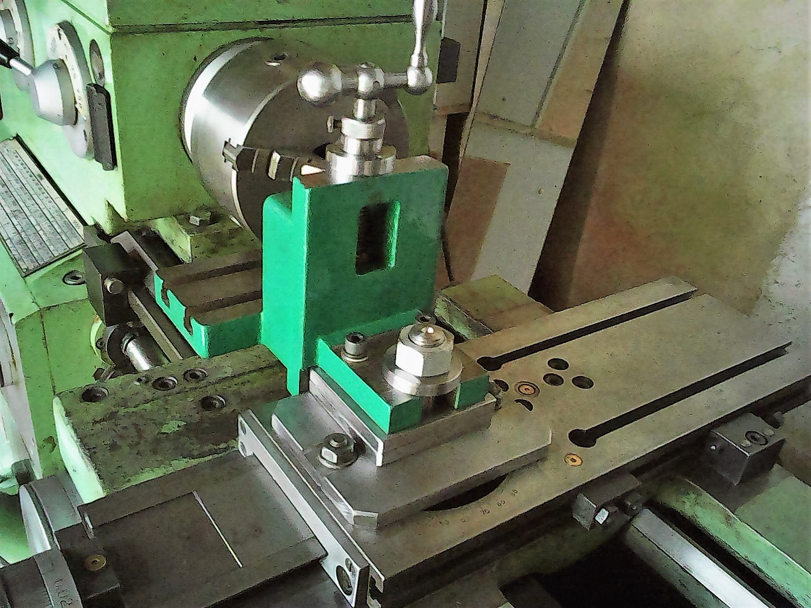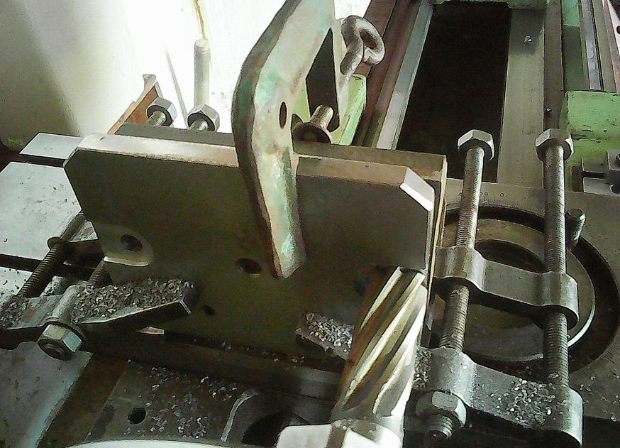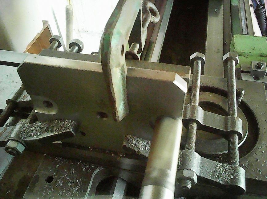 Tak jsem dneska chvilku frézoval - základní deska pro přichycení frézovacího suportu (namísto nožového suportu) A tady je už fréz.suport přišroubovaný místo nožového suportu. Ještě tam dojde středový šroub M 20 mm jednak na dotažení suportu a taky aby se dalo celým zařízením otáčet a frézovat podle nastavených stupňů (úhlů).