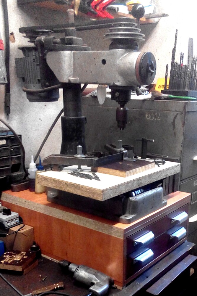 Protože na frézce nemám výsuvnou pinolu na vrtání a koupil jsem za dobře křížový stůl k vrtačce, tak jsem se dal do přizvednutí vrtačky.