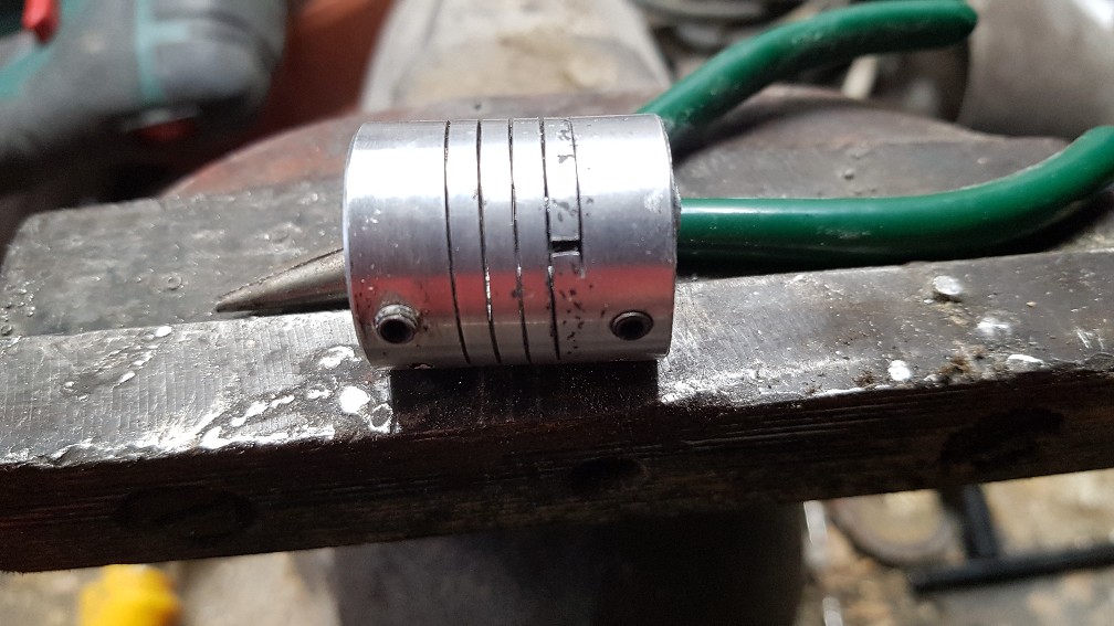 Tak jsem ji provizorně spravil pomocí dvou šroubků M3, které jsou přes první "závit" takže spojka pořád ještě pruží.