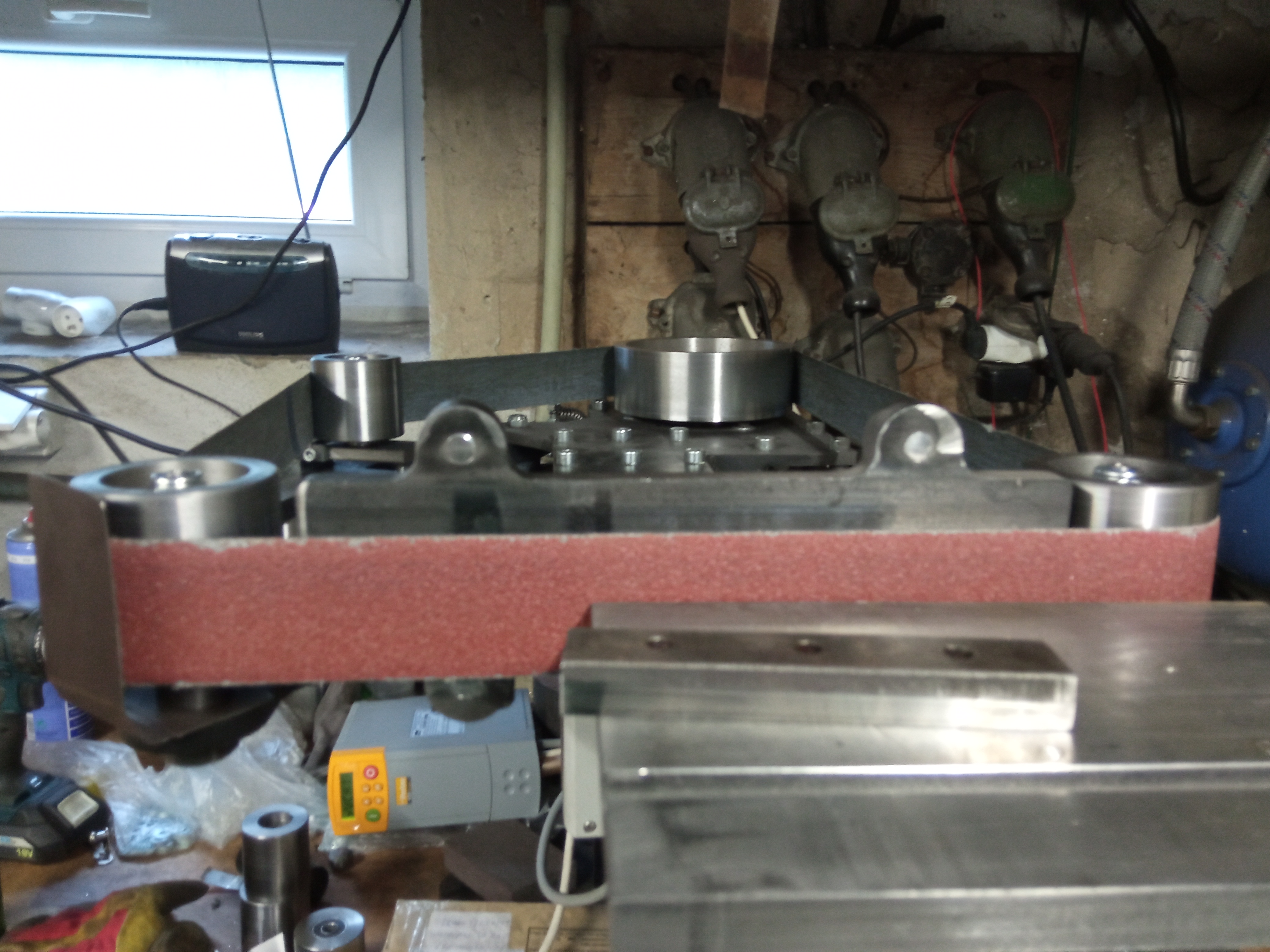 Pak jsem si chtěl vyměnit čelisti ve svěráku a ejhle, jsou o 1,5mm vyšší a nepasujou kvůli tomu na díry.. Otočil jsem pásovku na bok a už to sviští.
