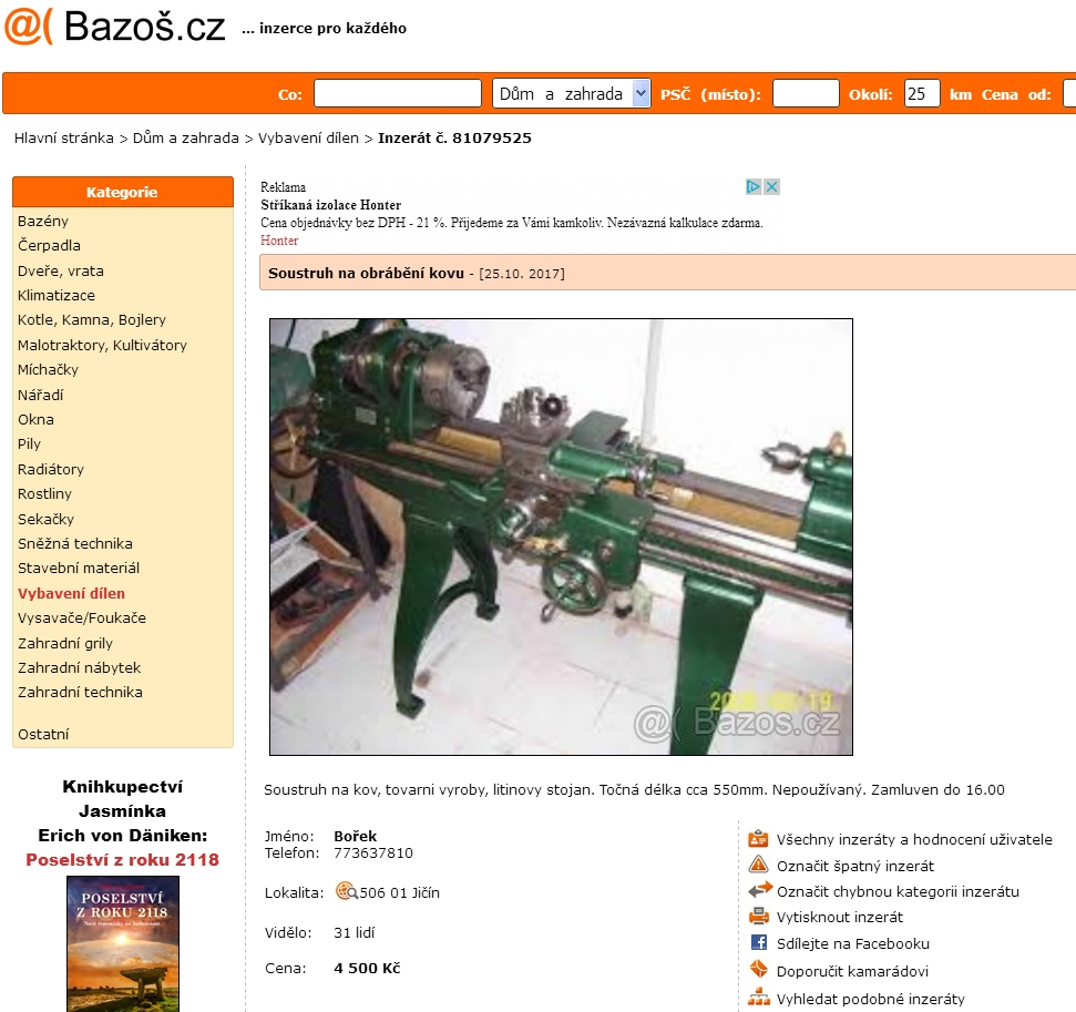 U toho maleho soustruhu na kov ma spatne cenovku, nemelo tam byt Kc ale EUR :lol: :lol: :lol: