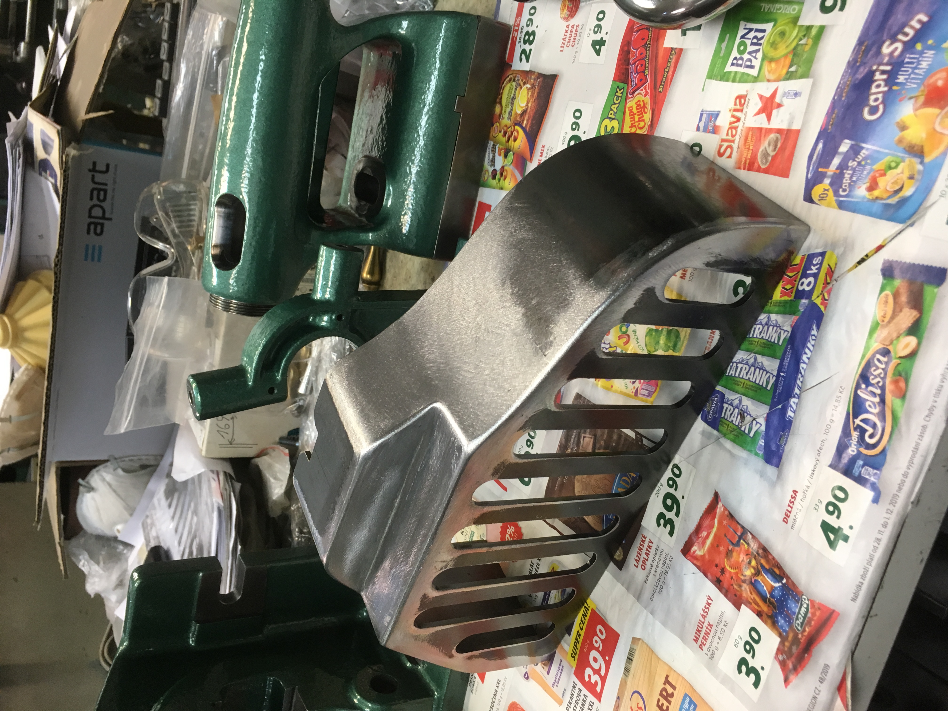 Chtěl jsem si ho původně nechat odlít ale nakonec jsem ho z lenosti abych nemusel vyrábět model , vyrobil z 3mm ocelového plechu. Díly jsou posvařované ceočkem a zabroušené a tuhost