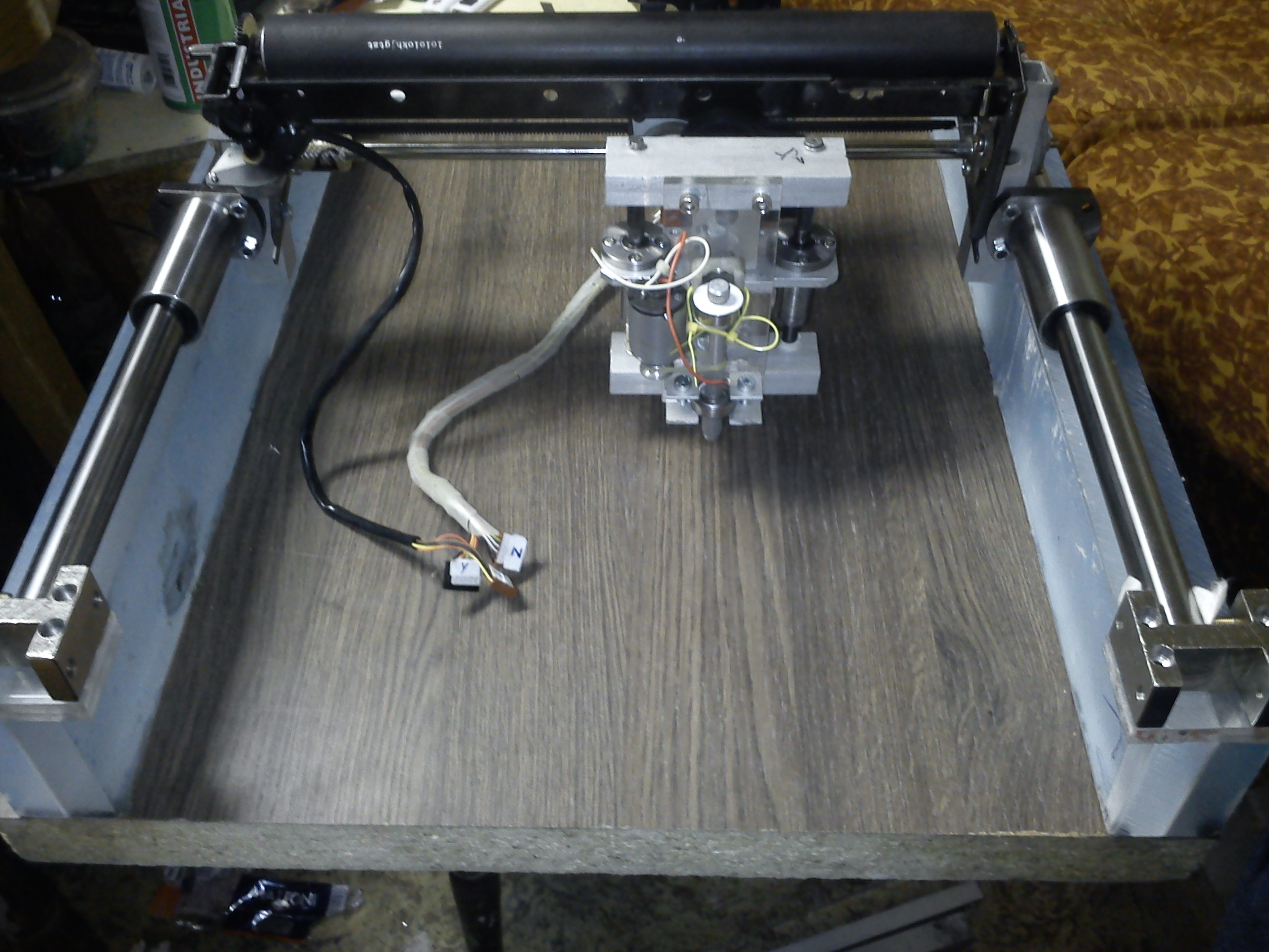 PS: Cosi ke konstrukci: X-ove lineari-spodny aspon 30cm nad stolom a vrchny co mozna nejdal od spodniho pridelane na tu masivni konstrukci. Na nej uspusobit osu Y vysunutu na kolmom ramene alespon 50 cm nad stolem a vystuzenu zhora a zo zadu.