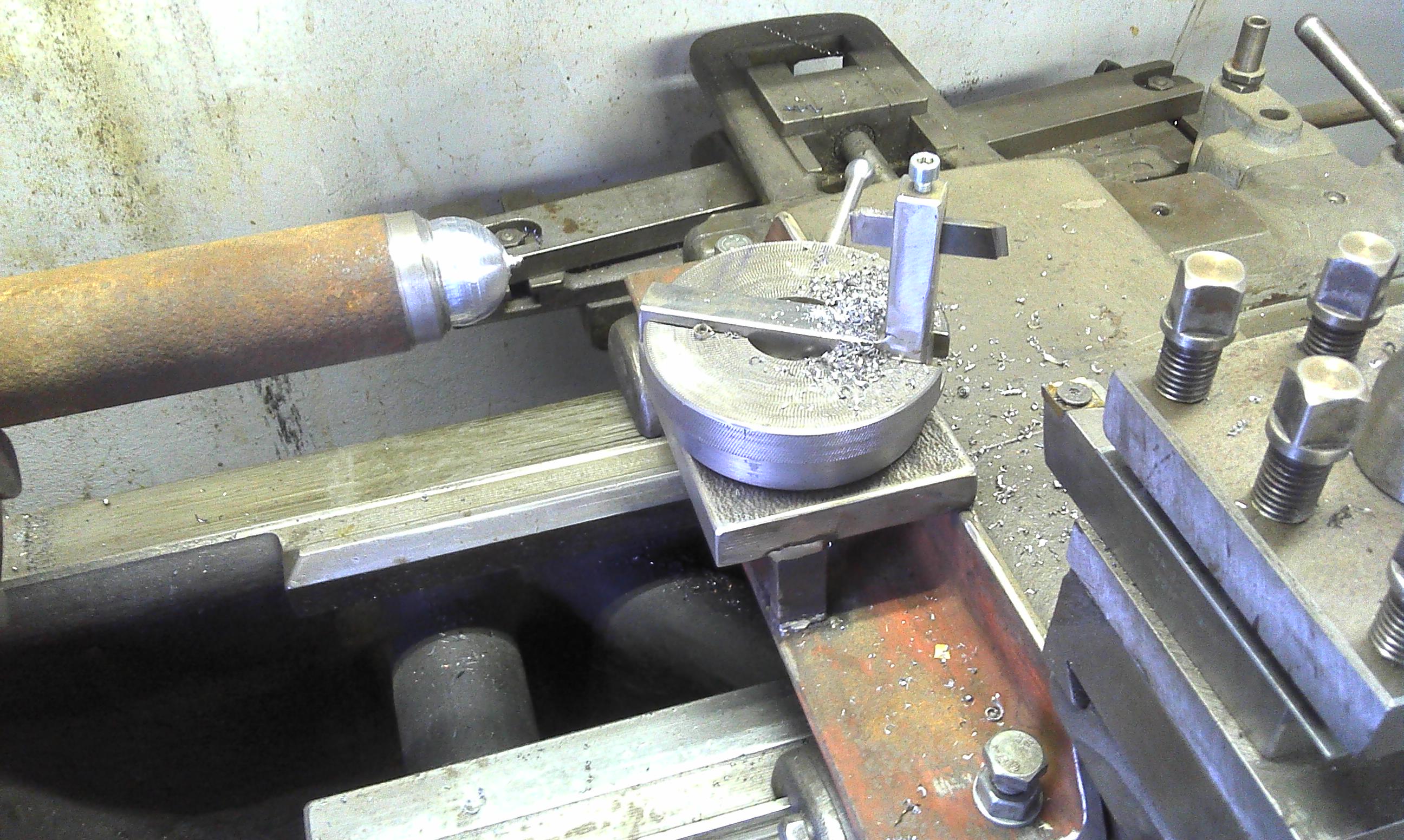 suport jak podélný, tak příčný musí stát a nesmí na něj hrabat a před samotným soustružením MUSÍ dostat osu rotace toho herberku do osy rotace soustružení, pak teprve pomoci měrky společně s přesným trnem může nastavit poloměr koule, nastavit nonius na nulu odjet a do nuly přijíždětdělat, dělat, dělat šišoid a jak dojede na nulu, tak udělat na poslední šponu přesnou kouli
