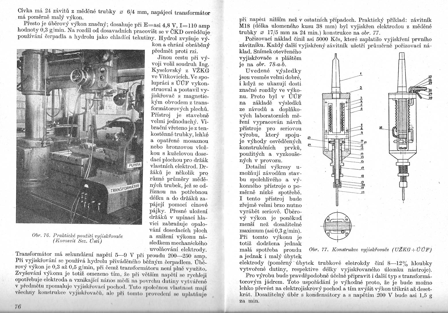 Osobně s vyjiskřováním zkušenosti nemám, čerpám z té knihy z 50tých let. Hlavní výhoda je, že se tam obešli bez elektroniky a stroje jsou to v podstatě primitivní, takže v amatérských podmínkách napodobitelné. :)