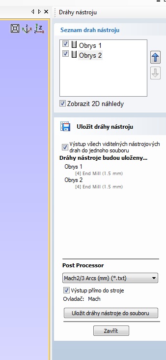 Je to hrozně jednoduché.Když dáš uložit G-kod objeví se ti tam políčko save a pod tím je zaškrtávací políčko na přímý export do Machu.když to zaškrtneš, jde to to přímo.Jedna věc"Když zkoušíš dráhy v animaci Cutu, tak se potom ty dráhy g-kodu anulují, tak je musíš znovu zaškrtnout a uložit.