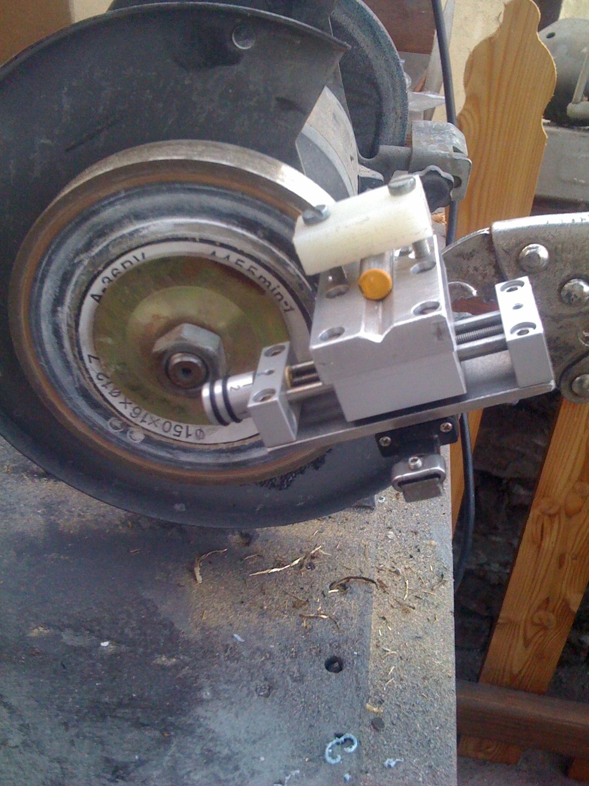 Právě, že vejde, odzkoušeno a funfuje to, zatím jen v provizorním režimu, ale funguje na klasické brusce. To vedení se přidělá na hradítko u kotouče a už to drandí.